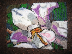Rug hooking: dyed wool on linen base