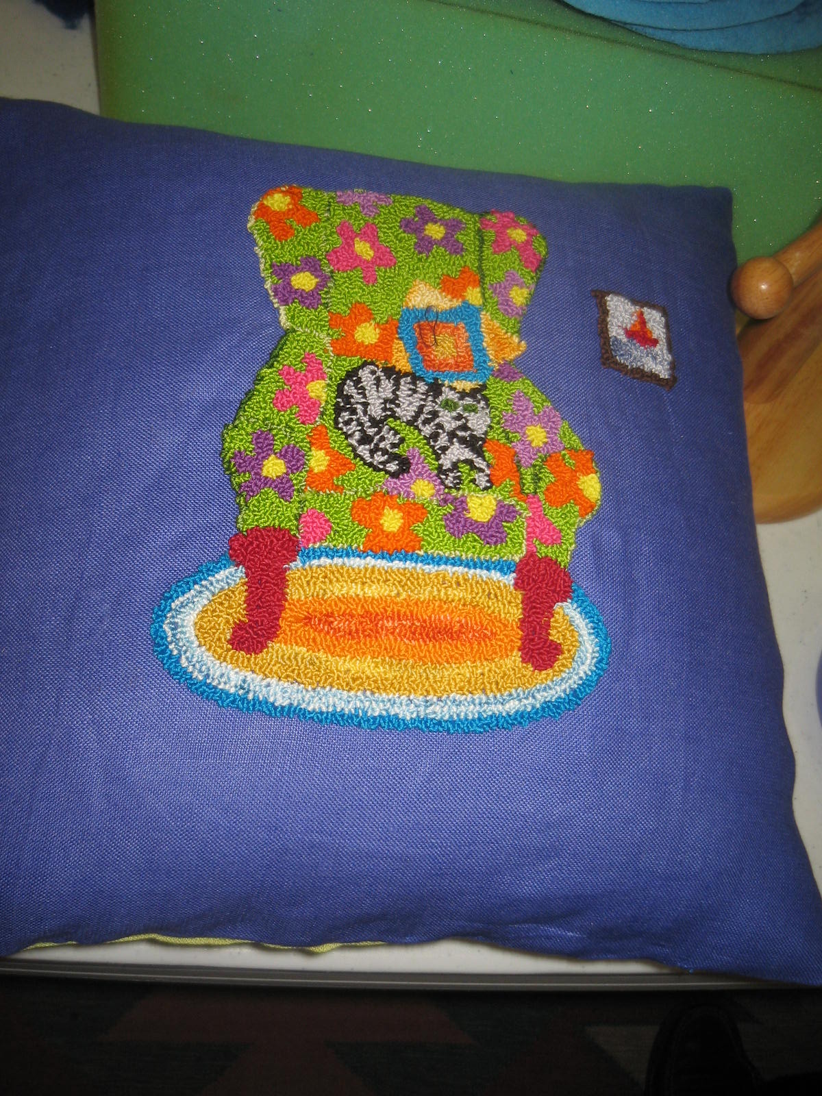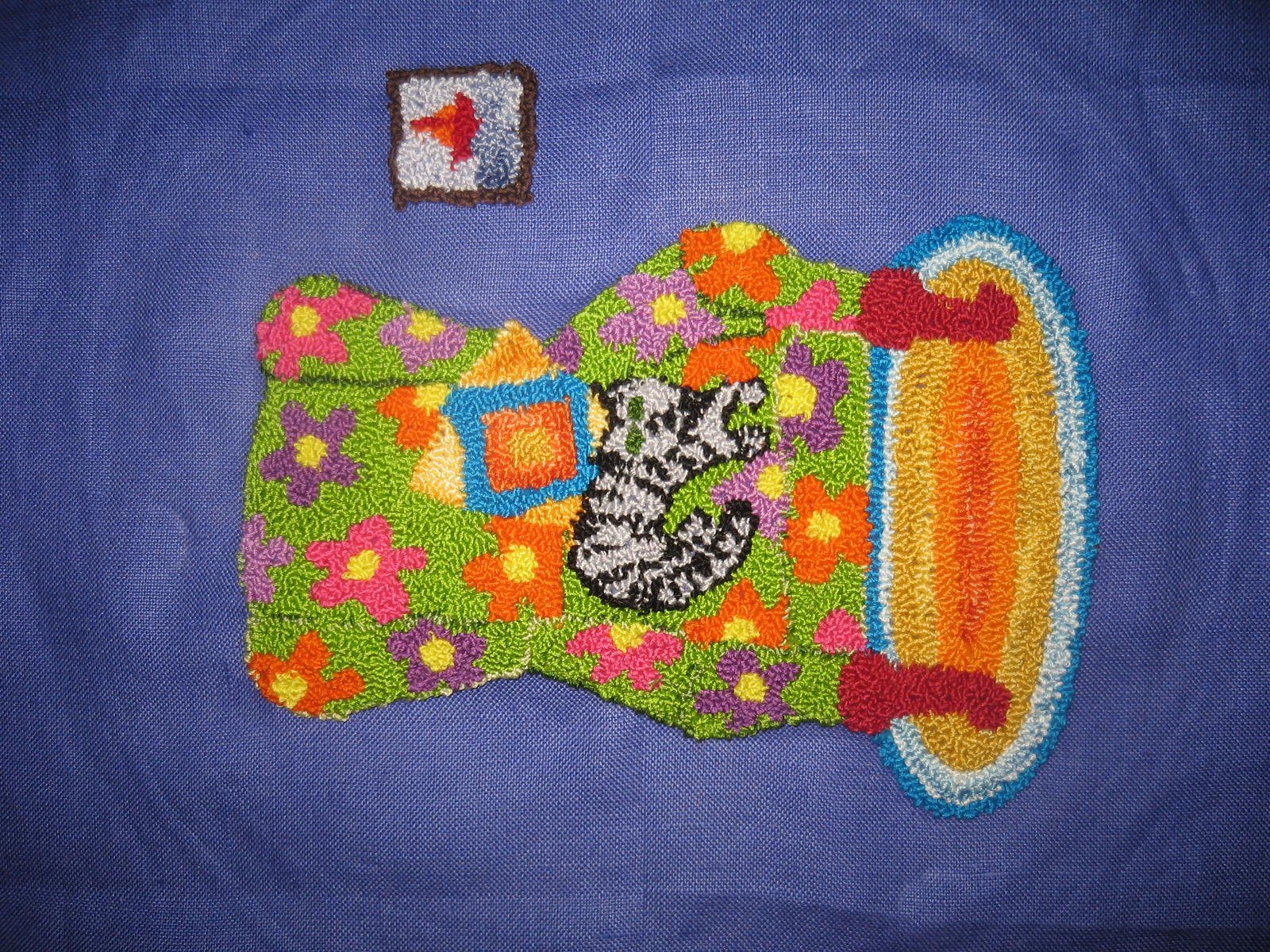 Punch needle: cotton floss on linen base
