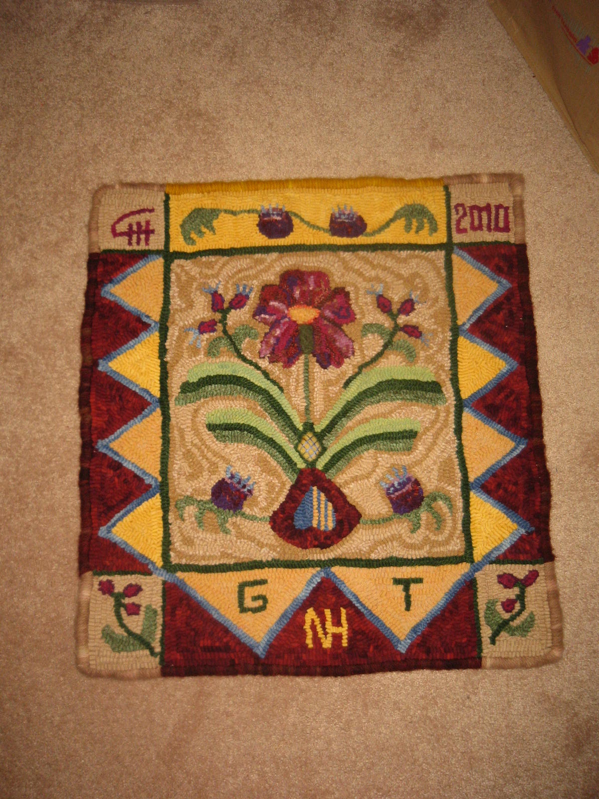 Designed and hooked by Gun-Marie Nalsen based on a swedish flower from 1800, and done as a Fraktur 2010