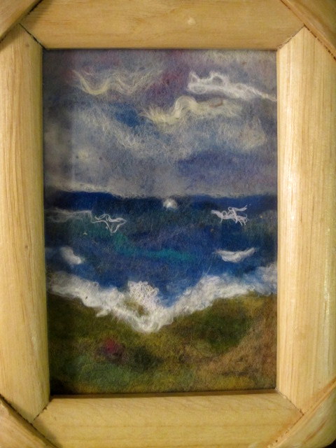 Designed and felted by Gun-Marie Nalsen 2014 Needle felting Hand dyed wool roving on wool Framed