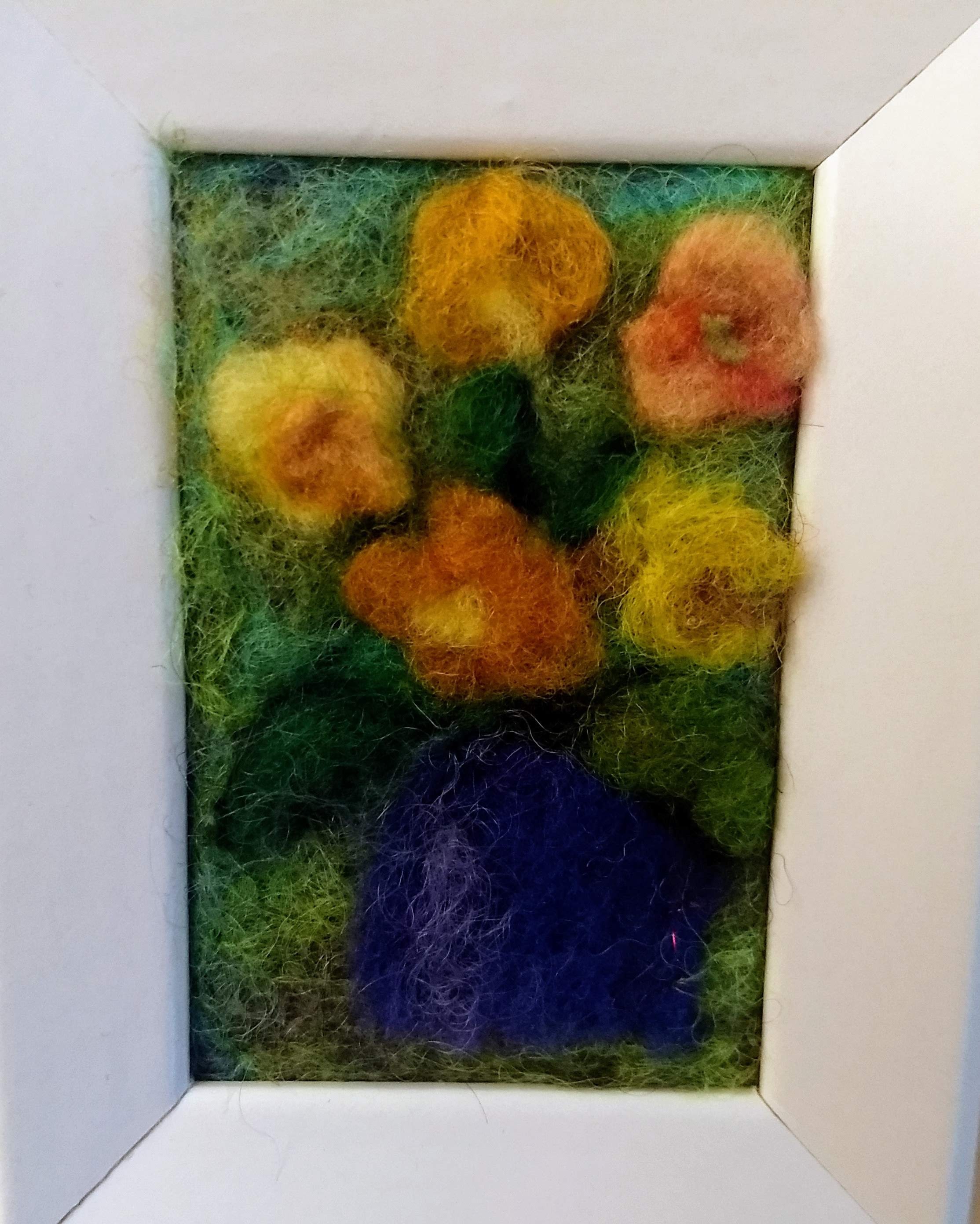 I think that this is the smallest felted piece of flowers that I have made, it was fun, it took a while to get them organized!