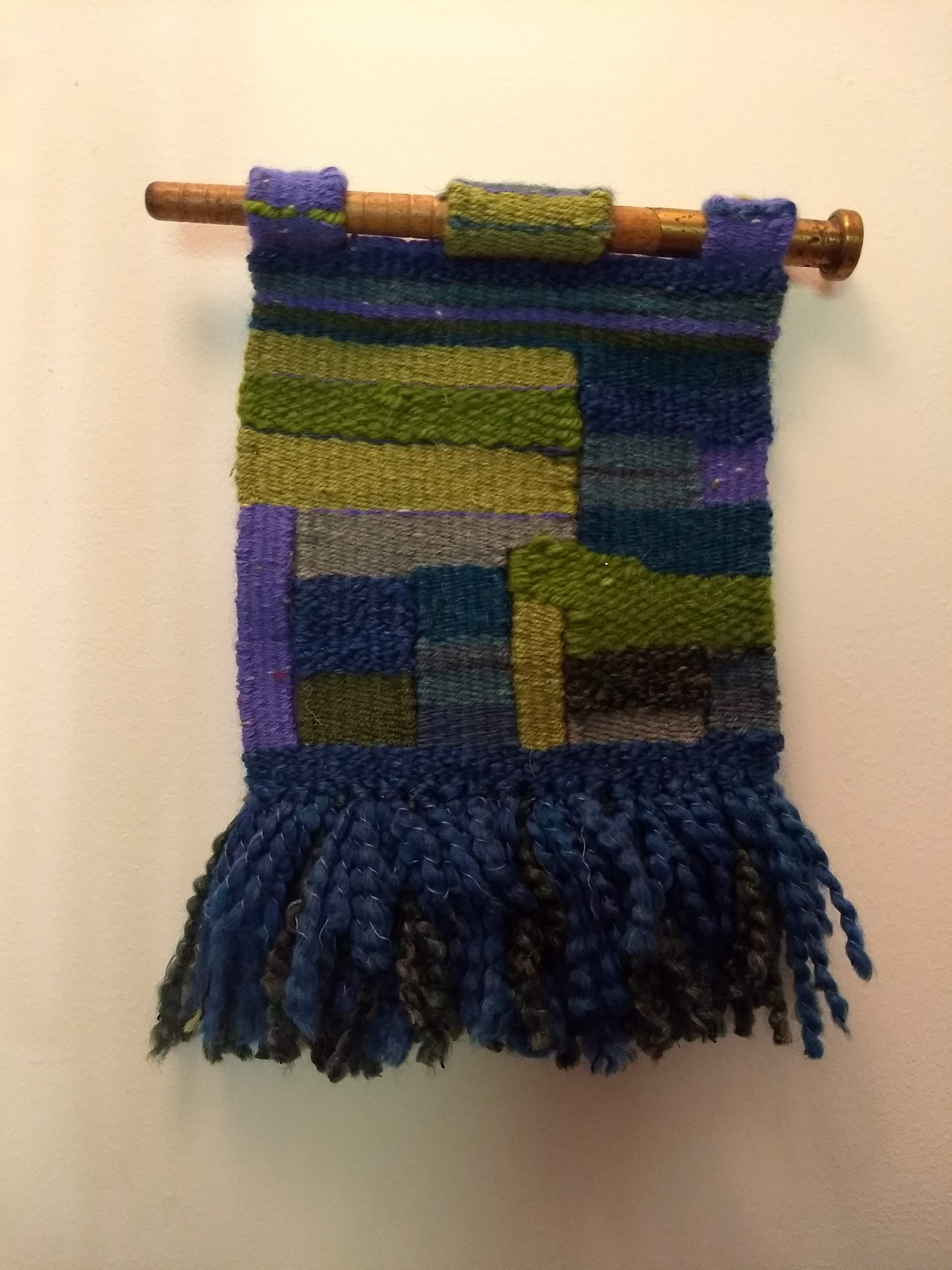 Hand woven on a tapestry loom, really fun to make. Making up the summer colors!