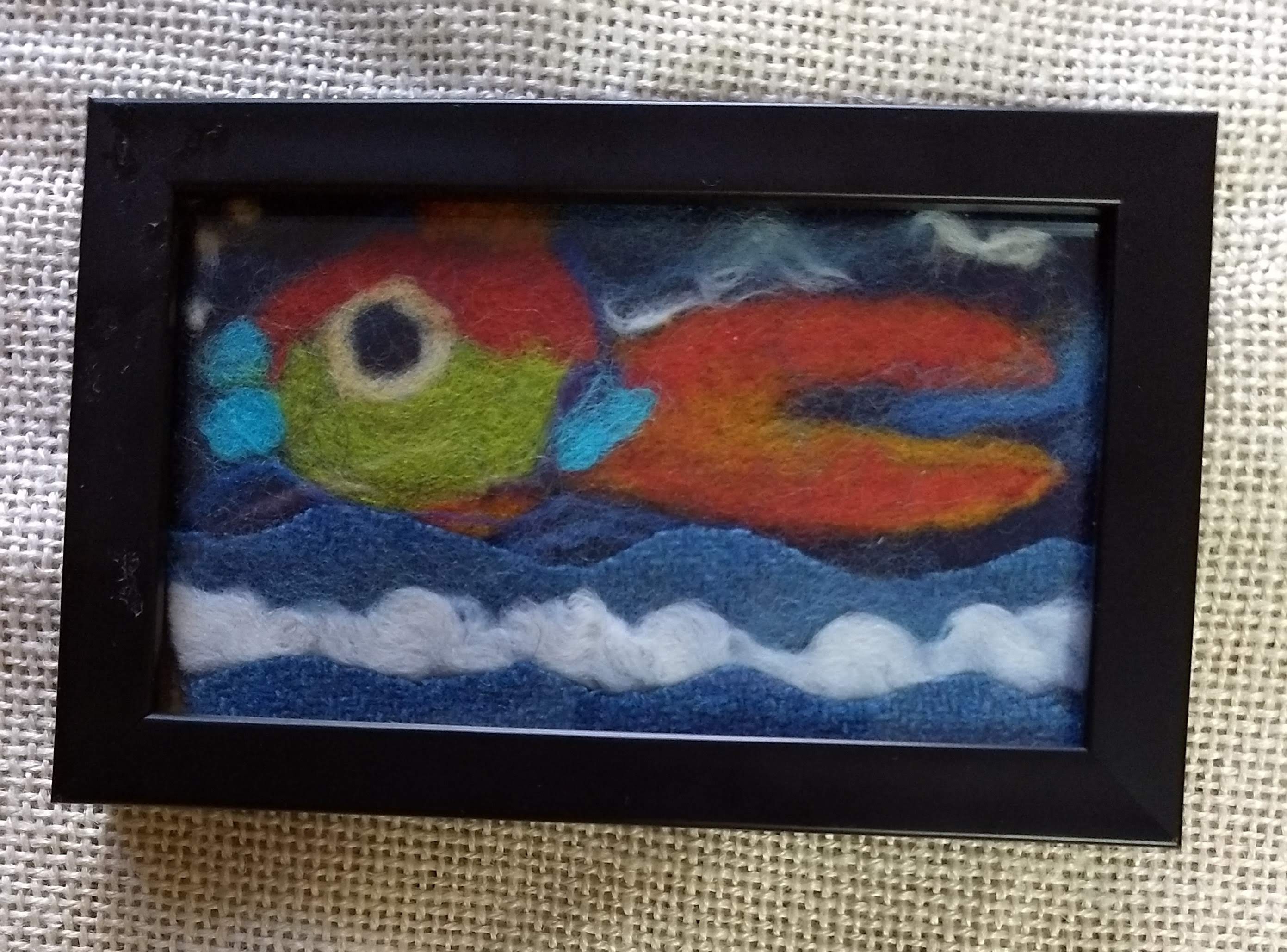 This little fish appeared from nowhere when I was playing with the wool roving, it is so much fun! It is a very tiny piece!