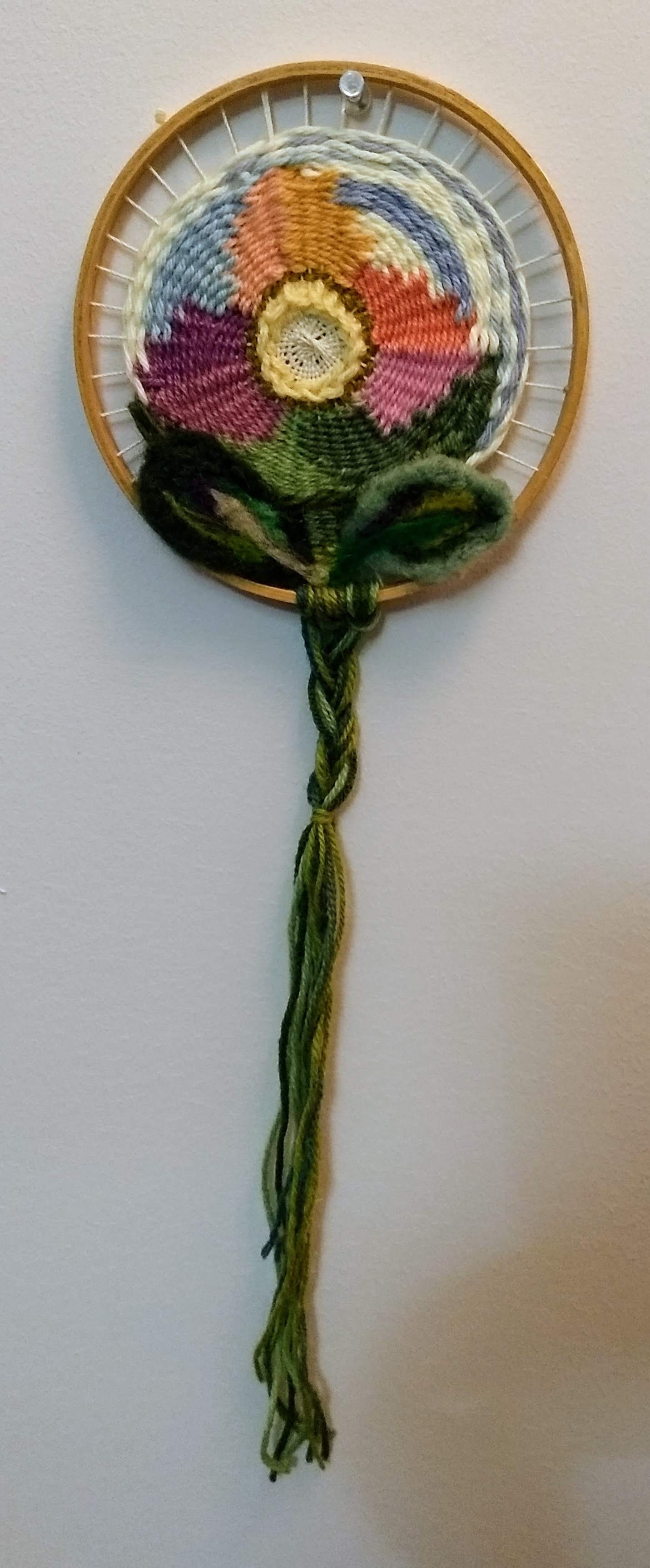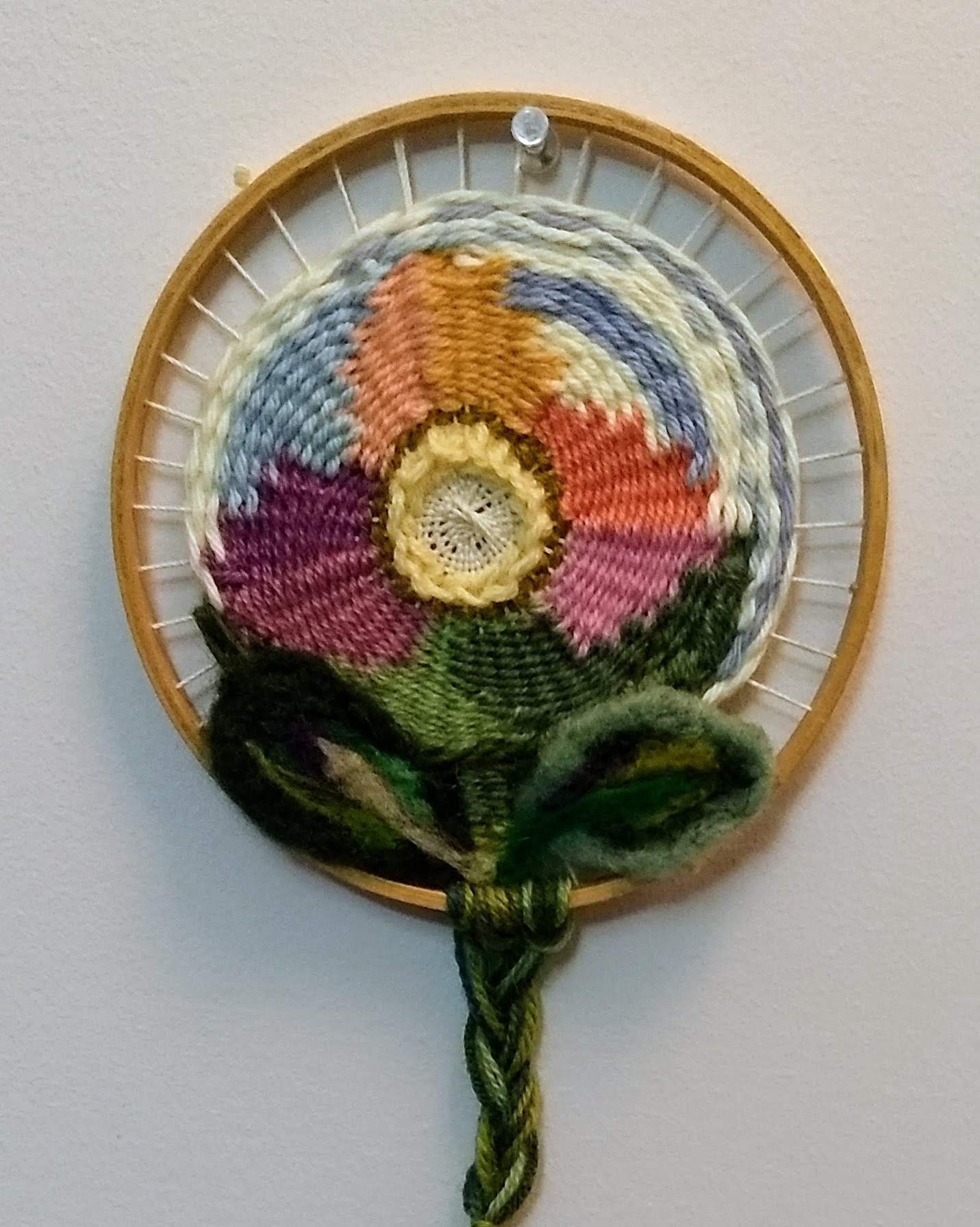Tapestry in a hoop and needle felting, mix media