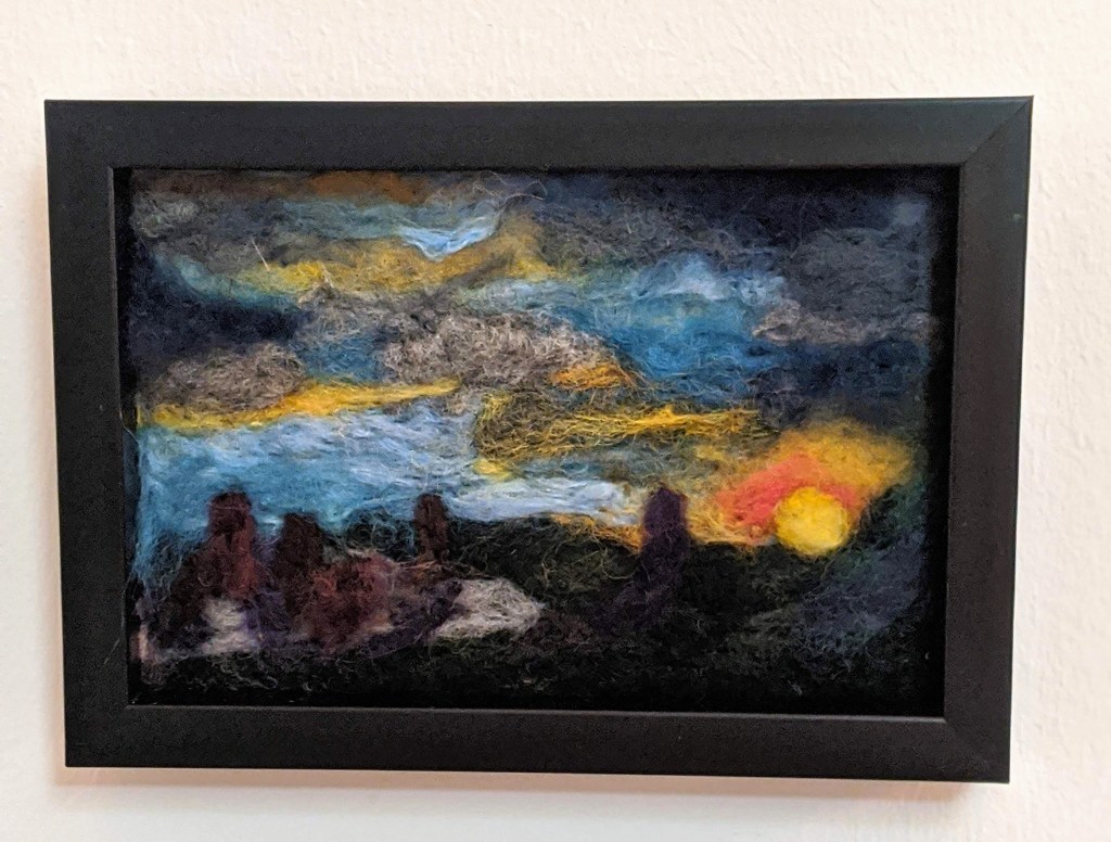 I have been thinking of doing a sunset for a while, and I found a picture that would work, and it did!! It is so much fun to work with dark colors and textures. Hope you like it!