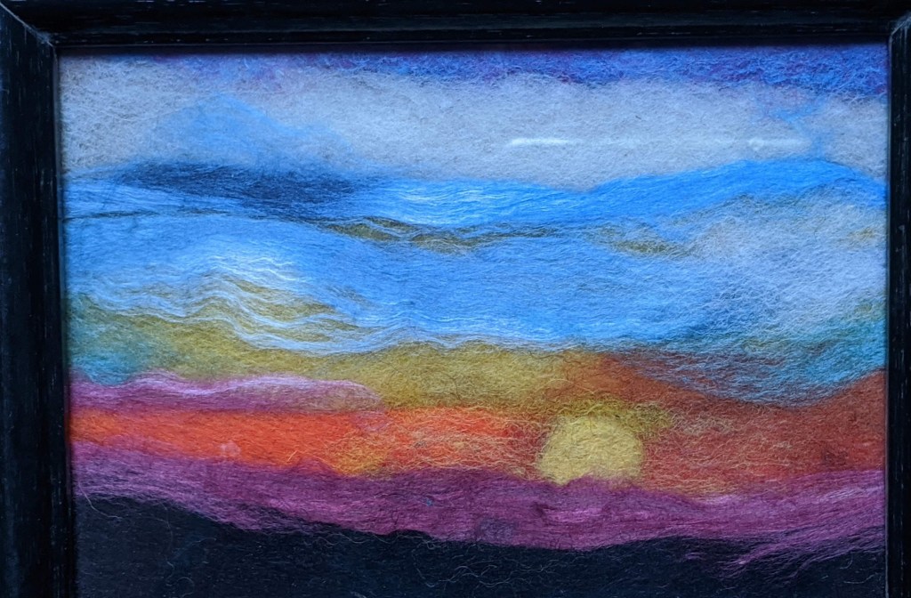 Fun to make sunsets in felting, playing with the colors. Practicing a different way of felting without needles, just putting the fibers one on top of the other, and pressing all with the glass of the frame, interesting effects, you never know how the fiber is going to be.