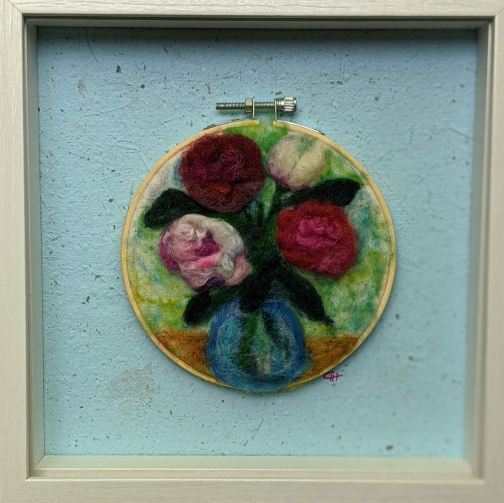 As usual me and the sea ! I love to make seashores, this is special because it is made by just putting the wool roving by layers, making the design, and then pressing it down with the glass of the frame. You never know how it is going to be, love the effects!