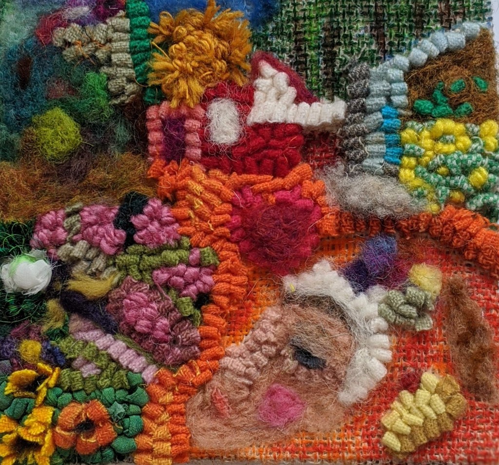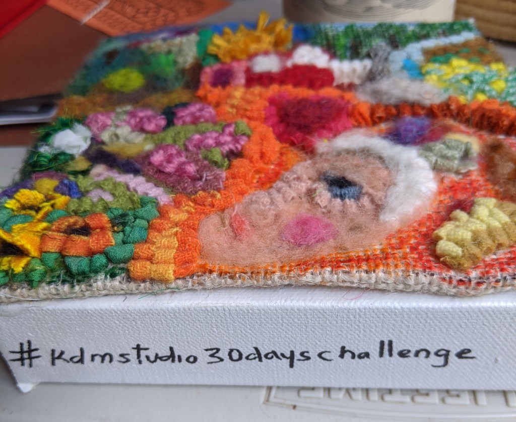 This is a #kdmstudio30daychallenge that I did. It was fun because each day I had to make something about the day. So one day I made bread, the other I found lilies, another I was sleepy, and so on. I used markers to paint some of it, rug hooking, needle felting. The difficult part was to put everything together, as I had started randomly. But it worked, one part is me and my heart and food and the rest is our house with flowers and a waterfall and rain. You have to imagine all!