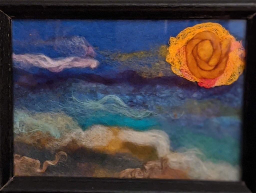 As usual me and the sea ! I love to make seashores, this is special because it is made by just putting the wool roving by layers, making the design, and then pressing it down with the glass of the frame. You never know how it is going to be, love the effects!