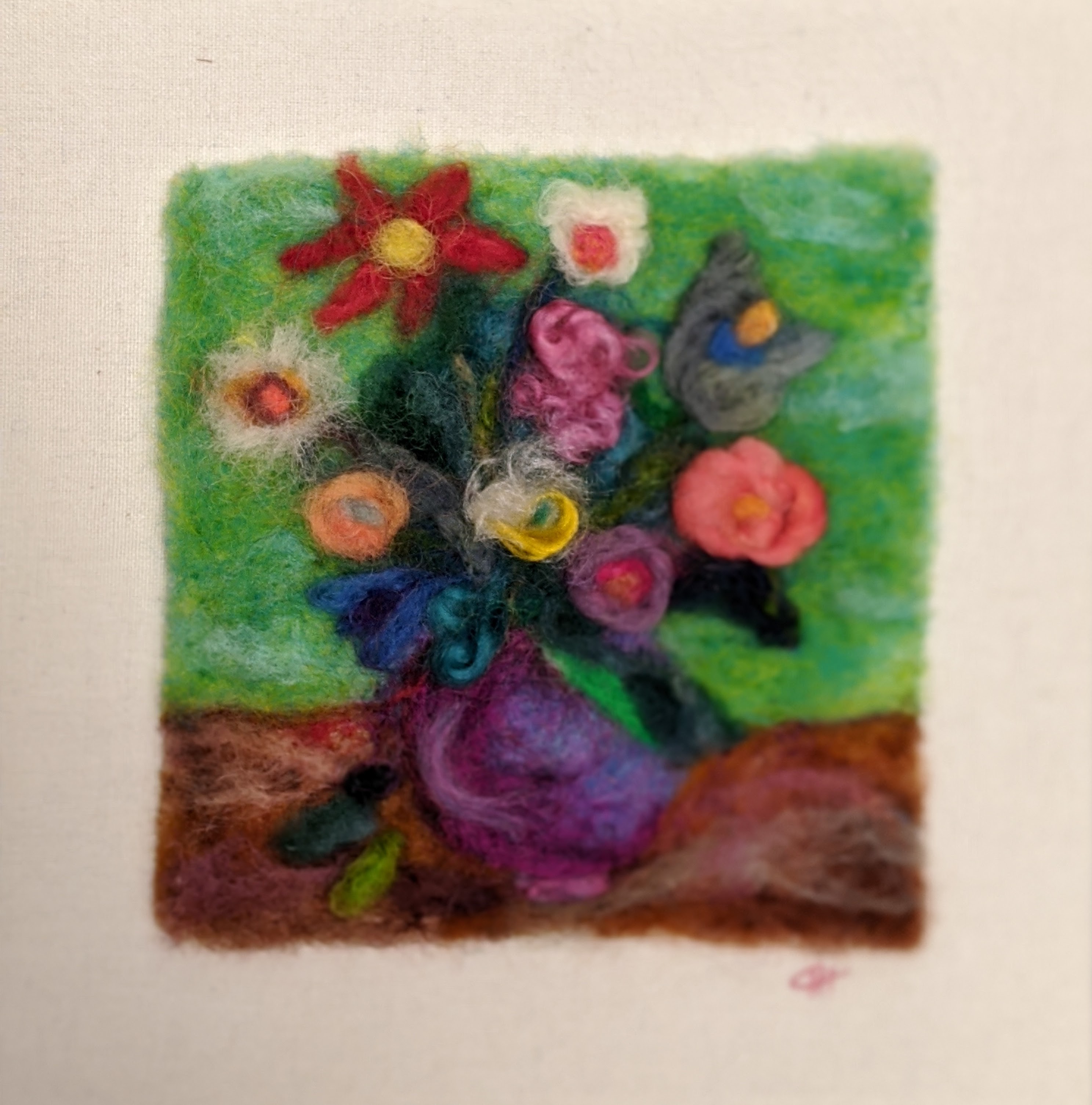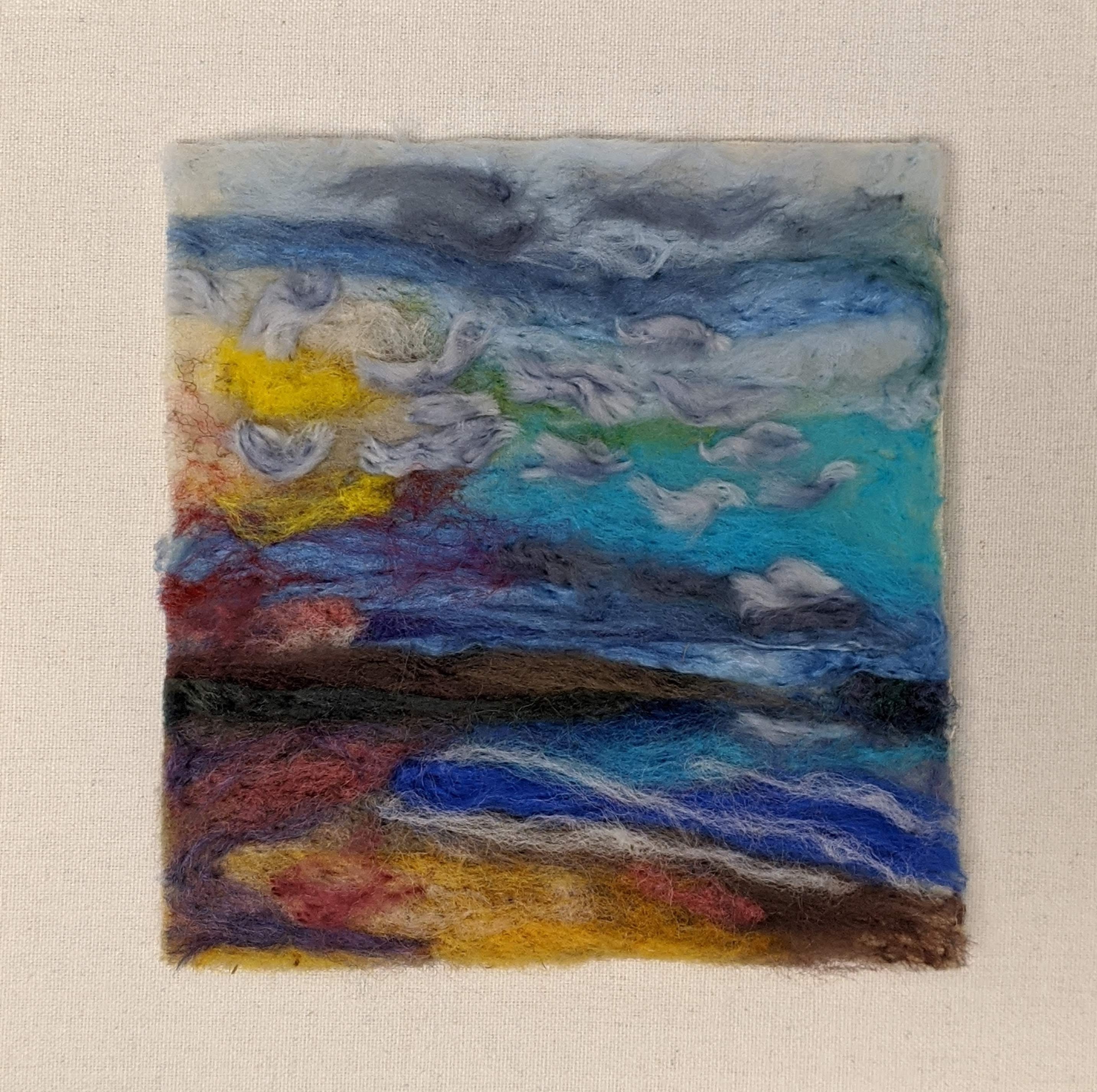 Mix media: rig hooking, needle felting, sewing with all kinds of materials.