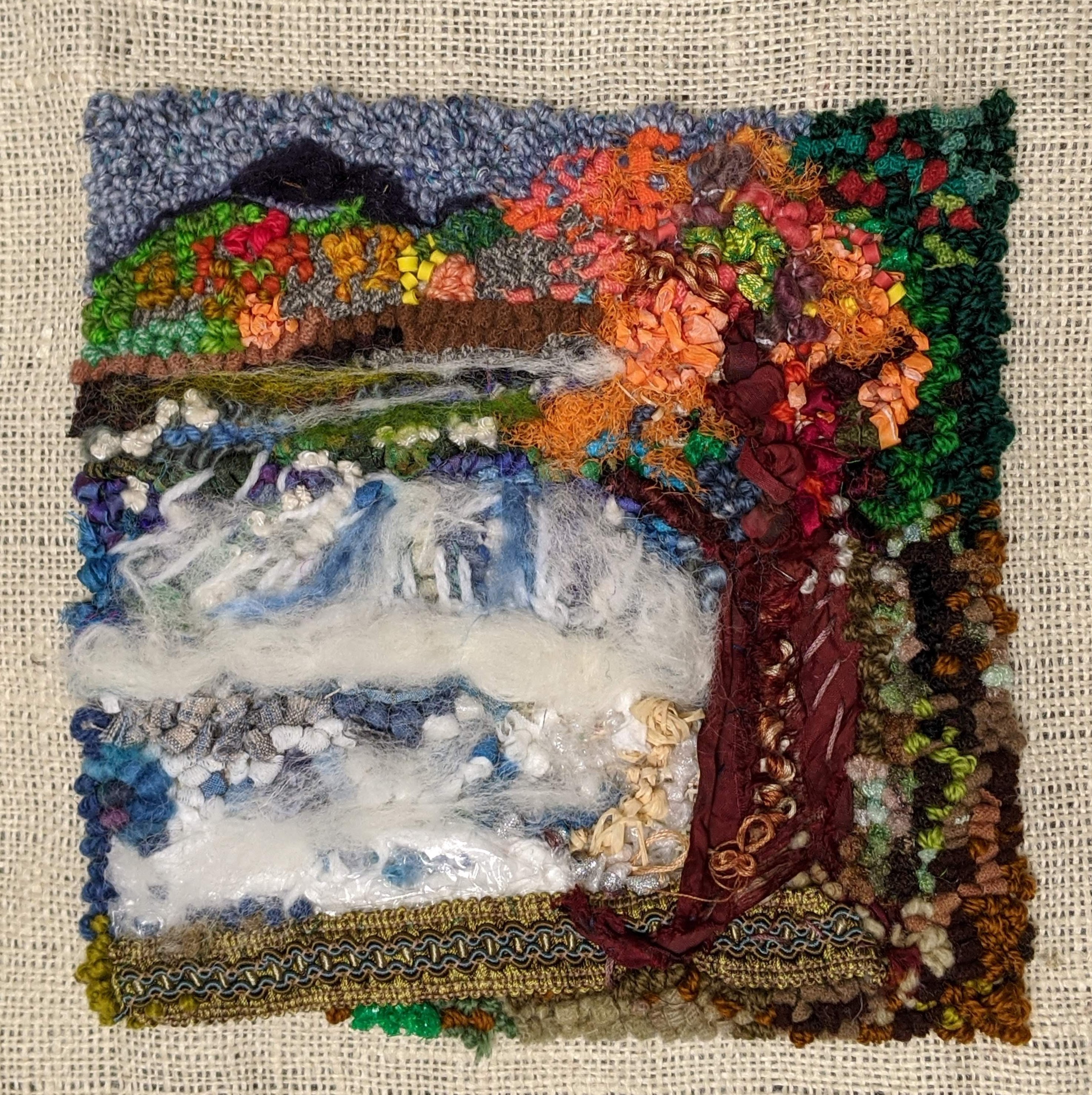 Mix media: rig hooking, needle felting, sewing with all kinds of materials.