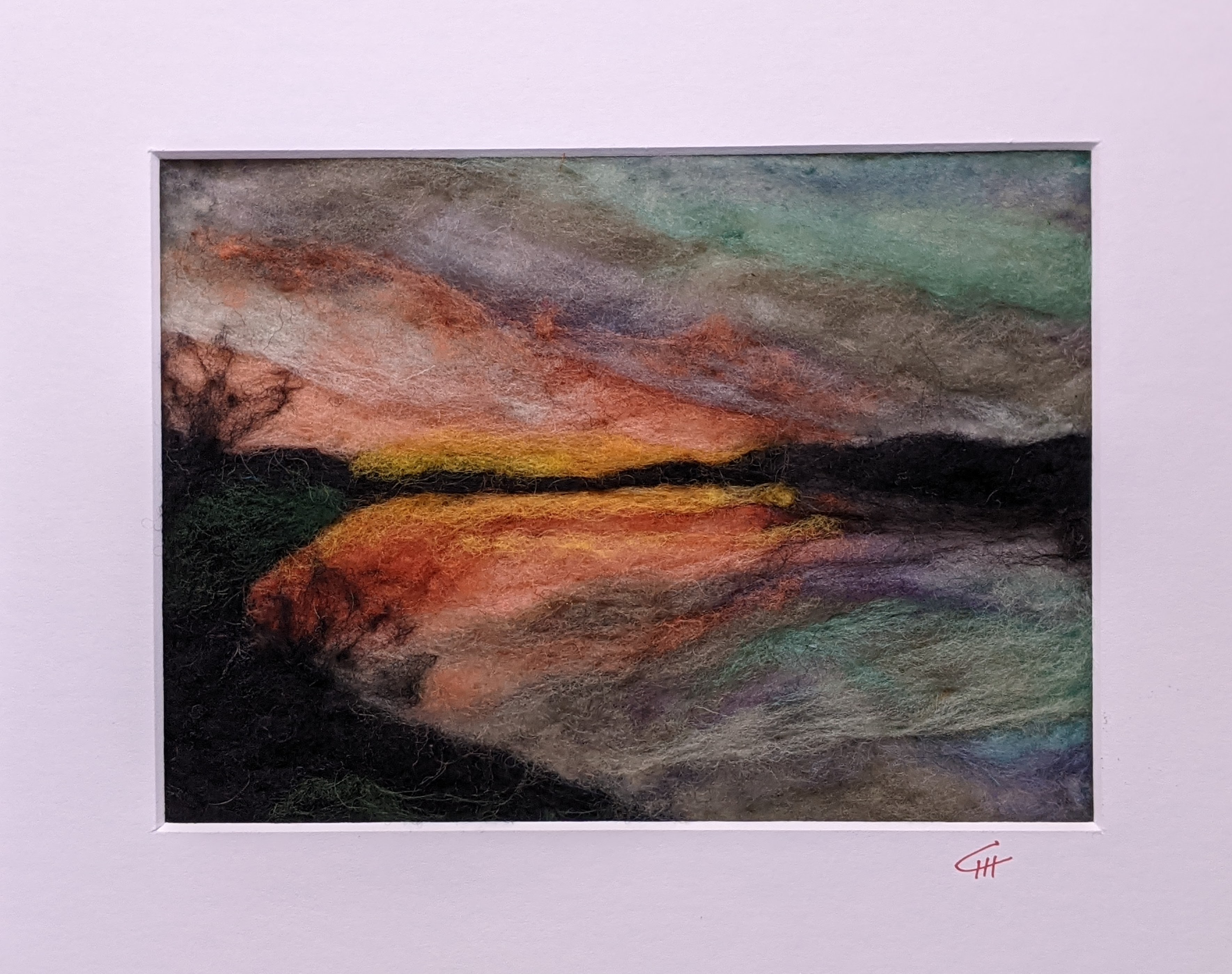 The sunsets at this time of the year are incredibles! So a friend send me a picture of this one, and I had to make it. The colors are the real ones!! Love to do felting!