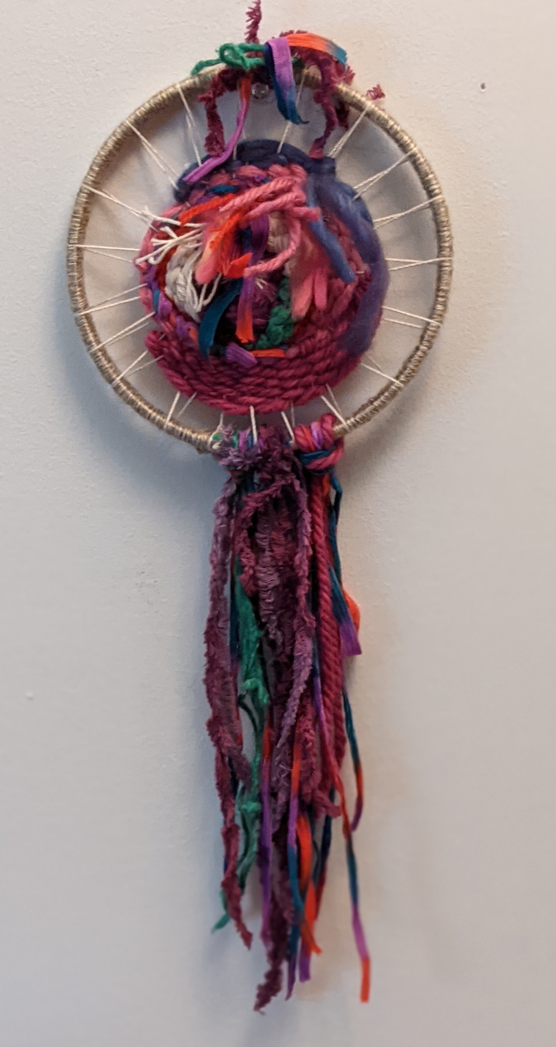 It was a long time since I made wove in a hoop. It is fun, and sometimes unpredictable, depending on the materials you use. The colors were there in my bag after a commission I made recently. So there it is!