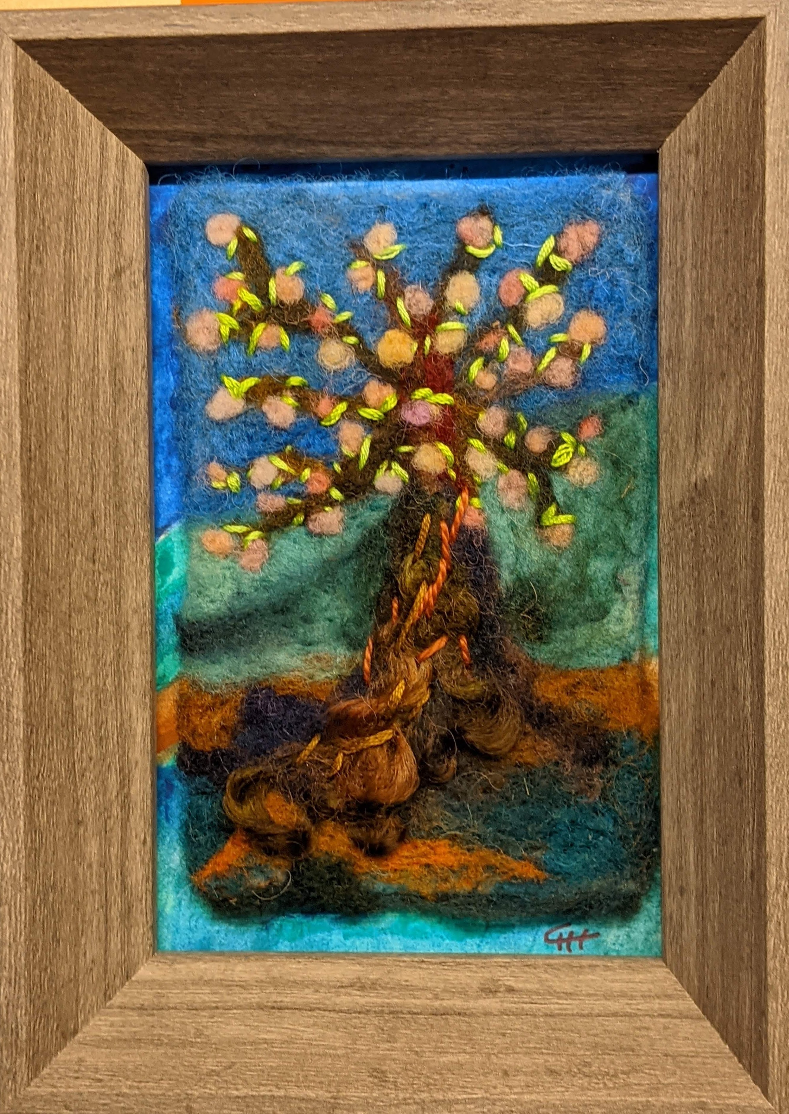 It was fun to make this tree with the fist blossoms of the spring, and then I added some very small green embroidery leaves, I think it came out cool!
