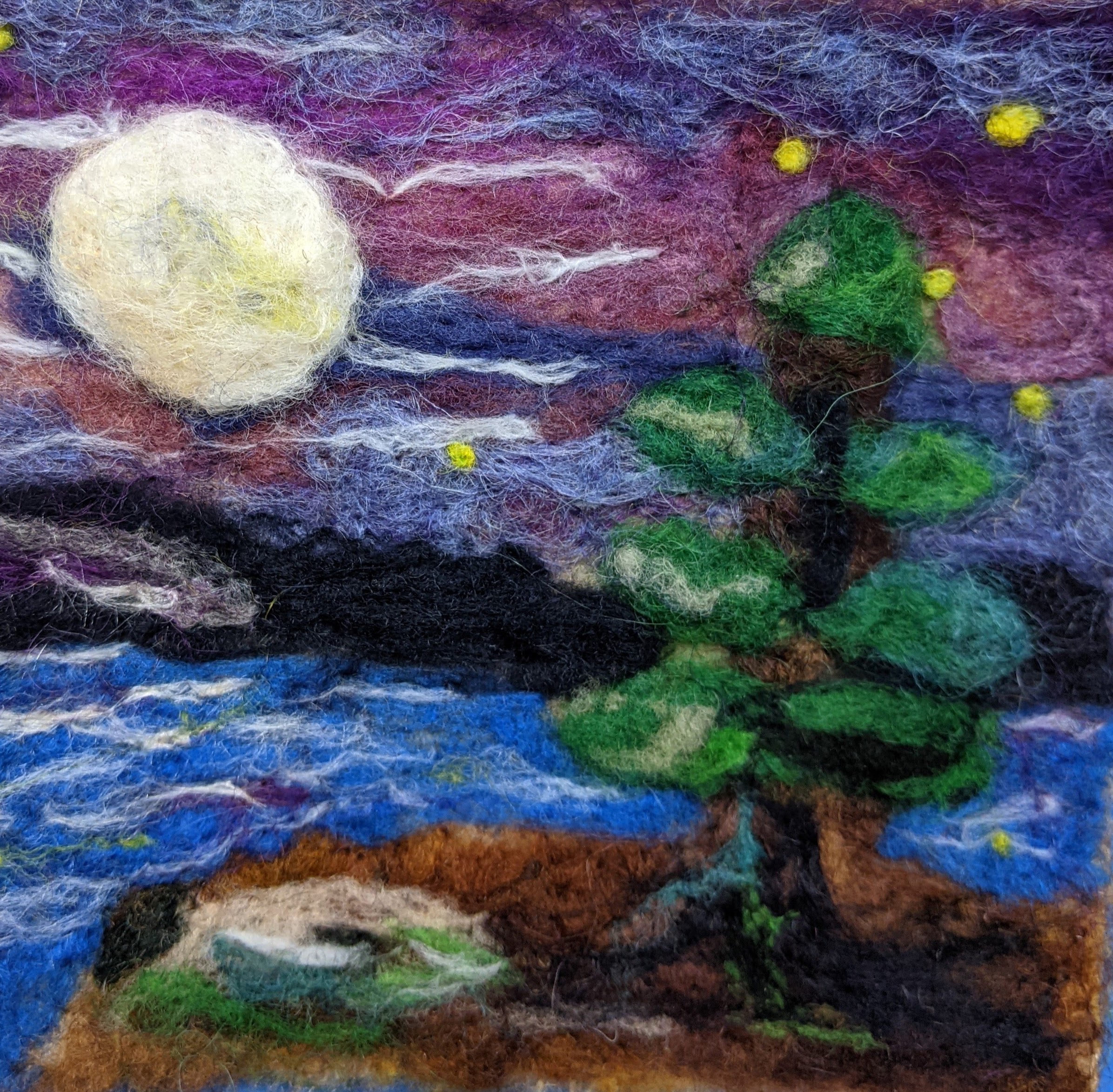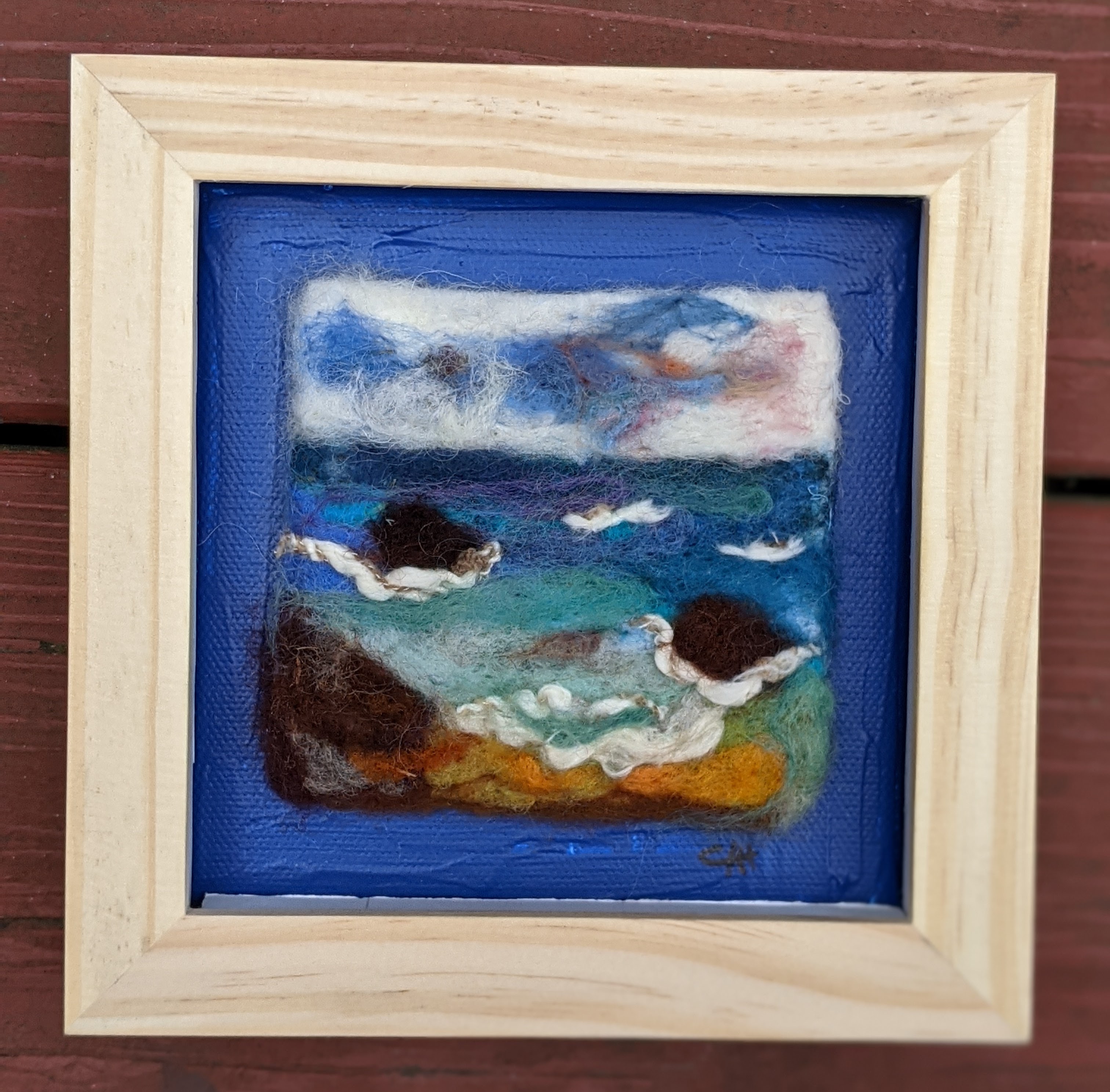 is delicious! I enjoyed a lot making this piece because it has depth. Using the wool roving give it more