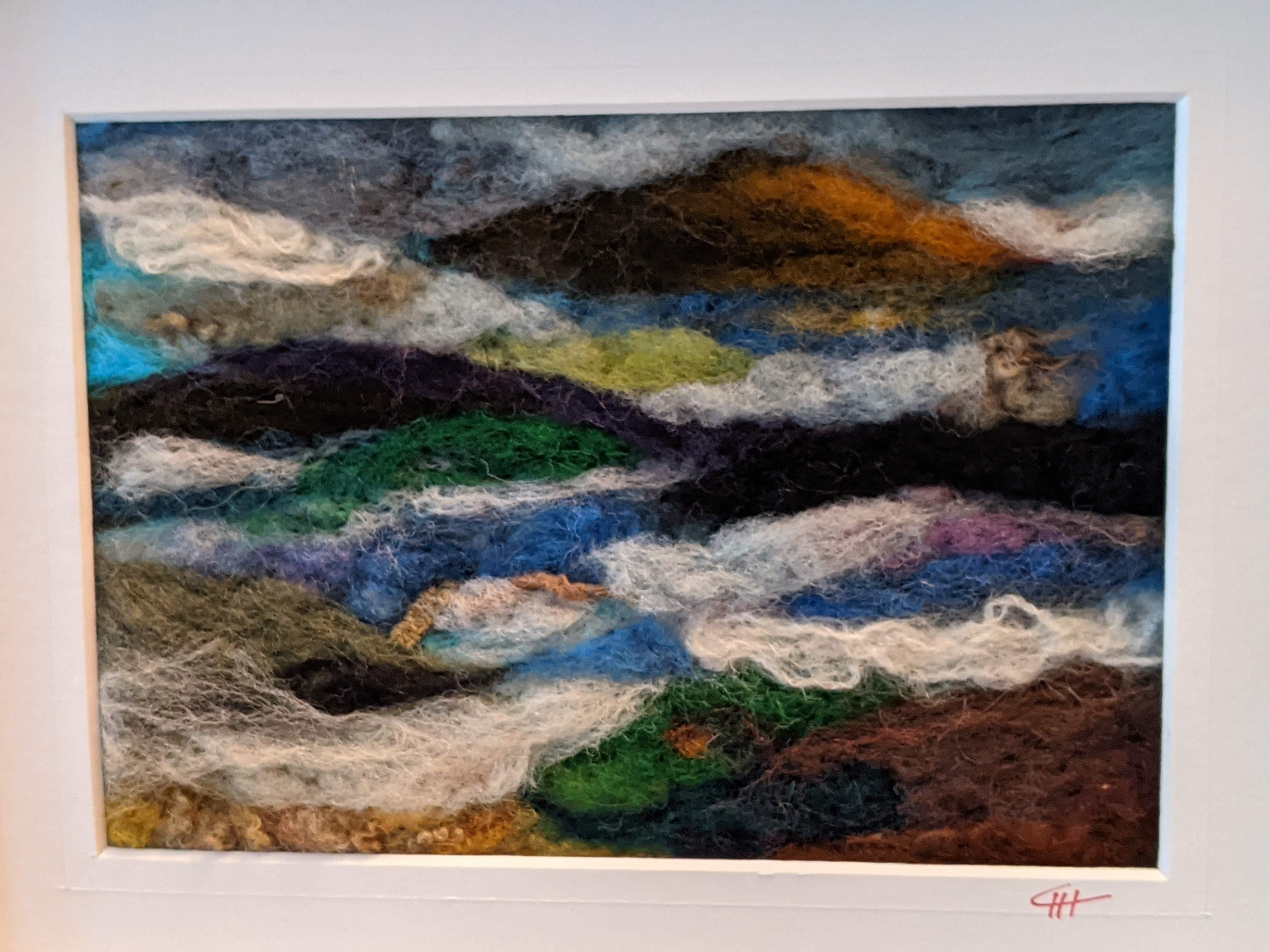 This work just appeared by itself. It happens a lot to me. A just sit and start to felt, and it comes out by itself. So these are mountains where the fog is low, and you can see only the top. It was fun how it came together. Hope somebody likes it!