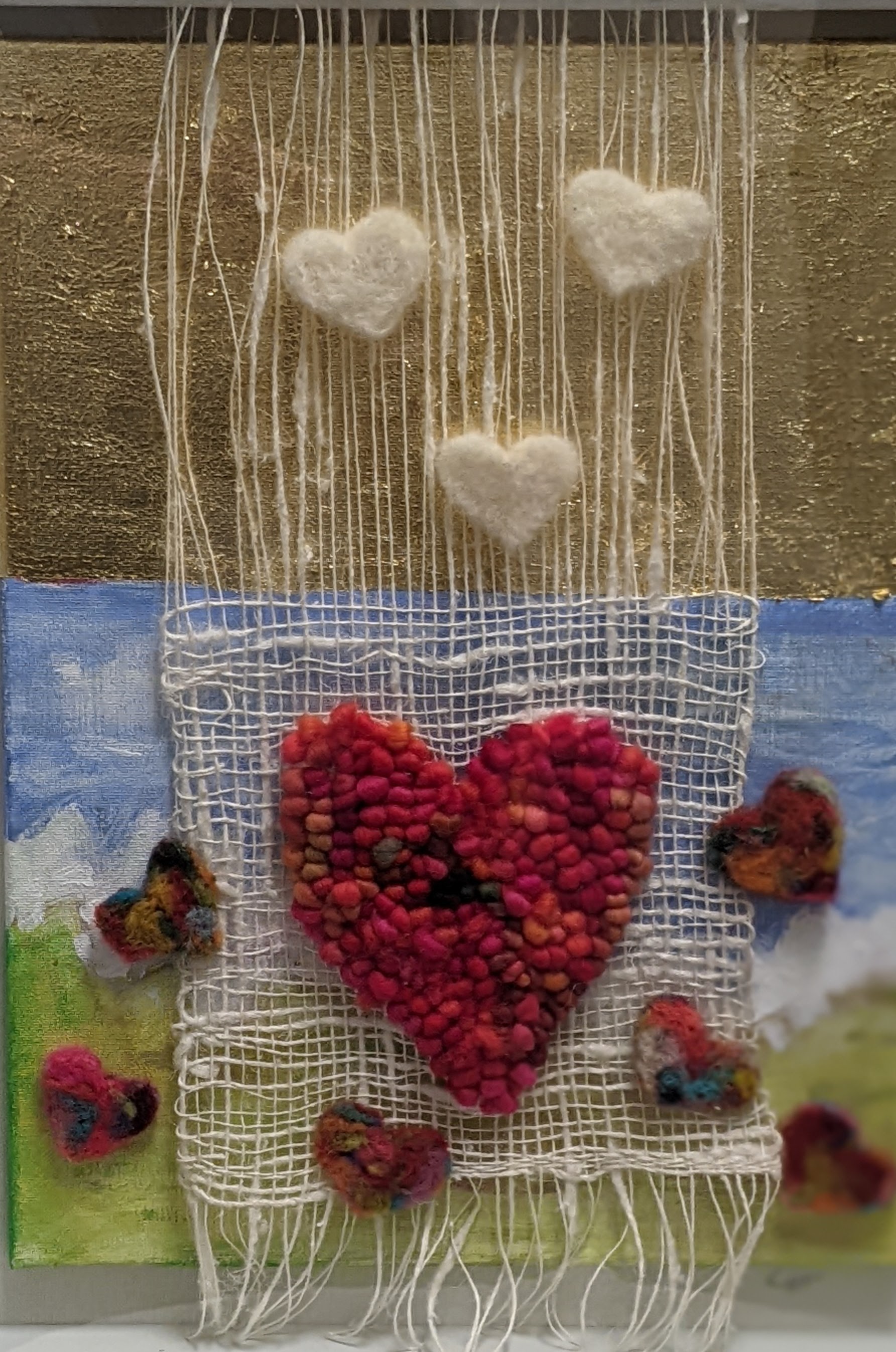 that I had, and made the hearts in different tones in roving, painted with acrylics