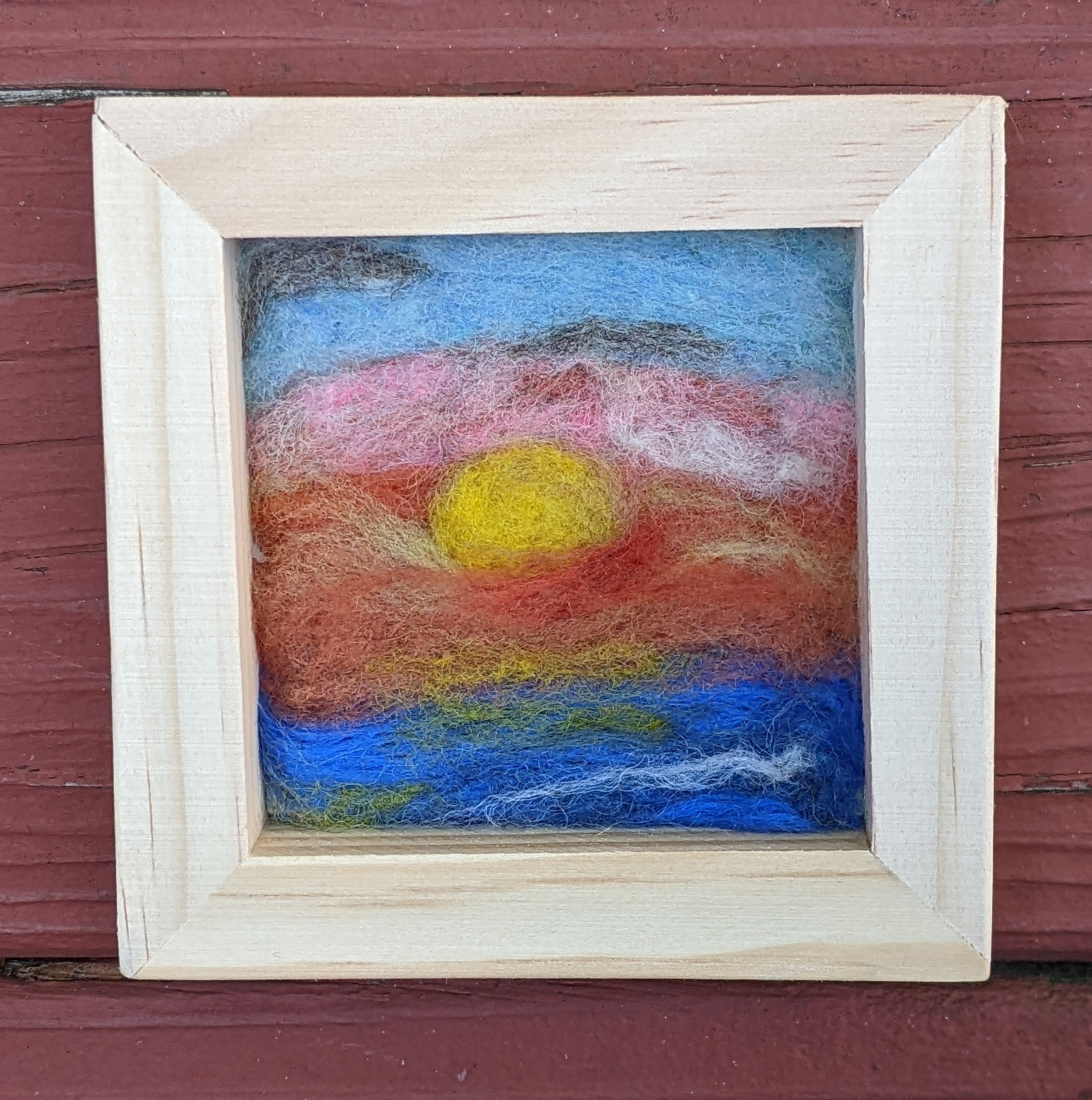 Hand dyed wool roving and hand dyed wool fabric on wool fabric
