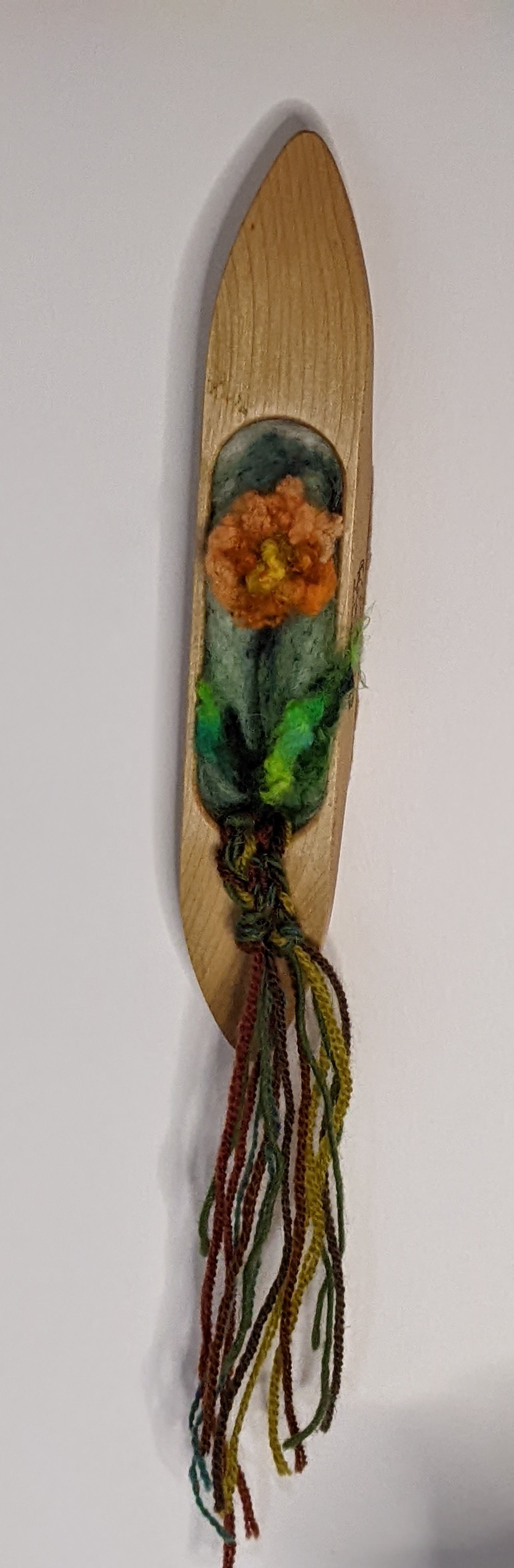 It was fun to use one of my shuttles of my former weaving time to put a needle