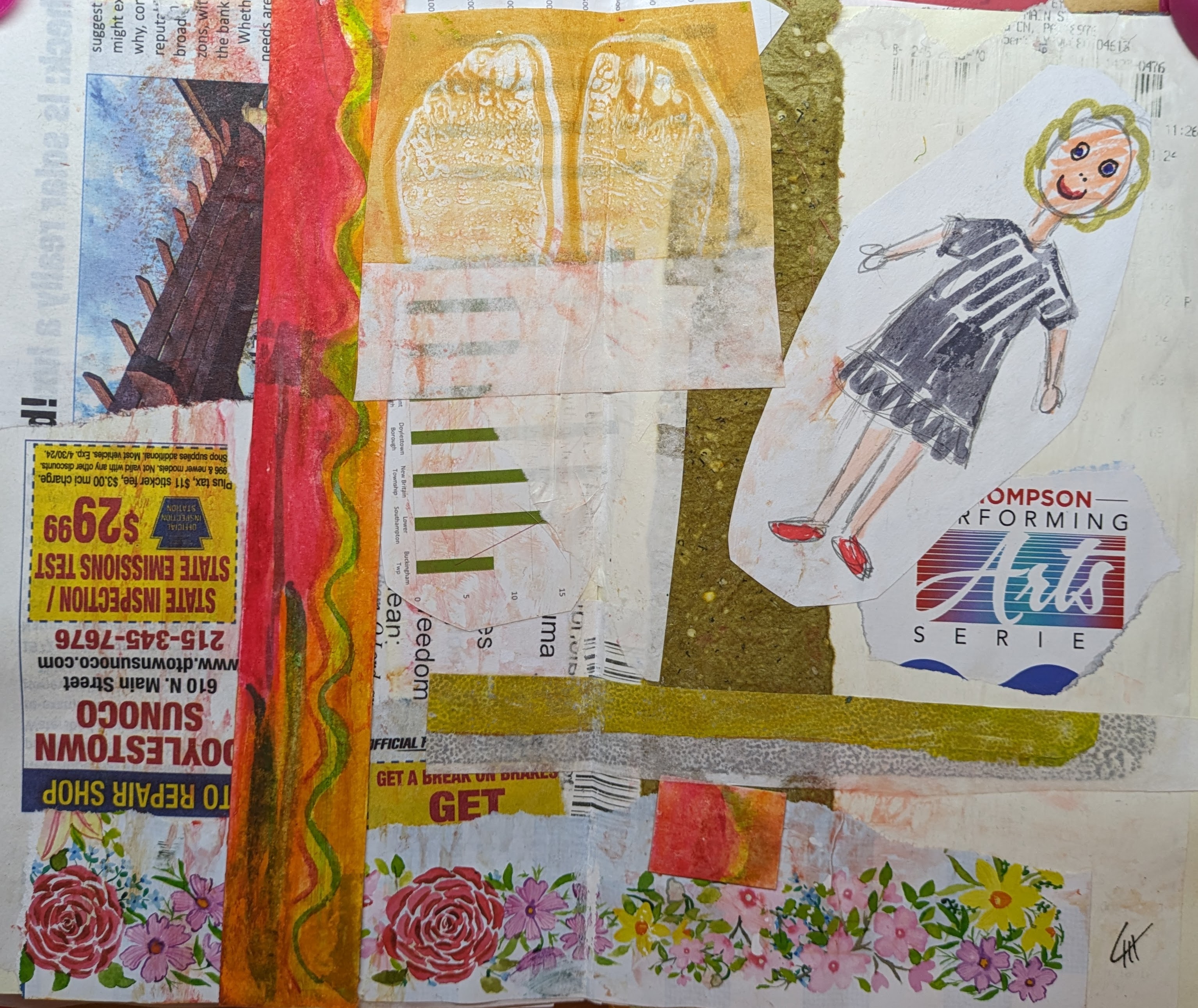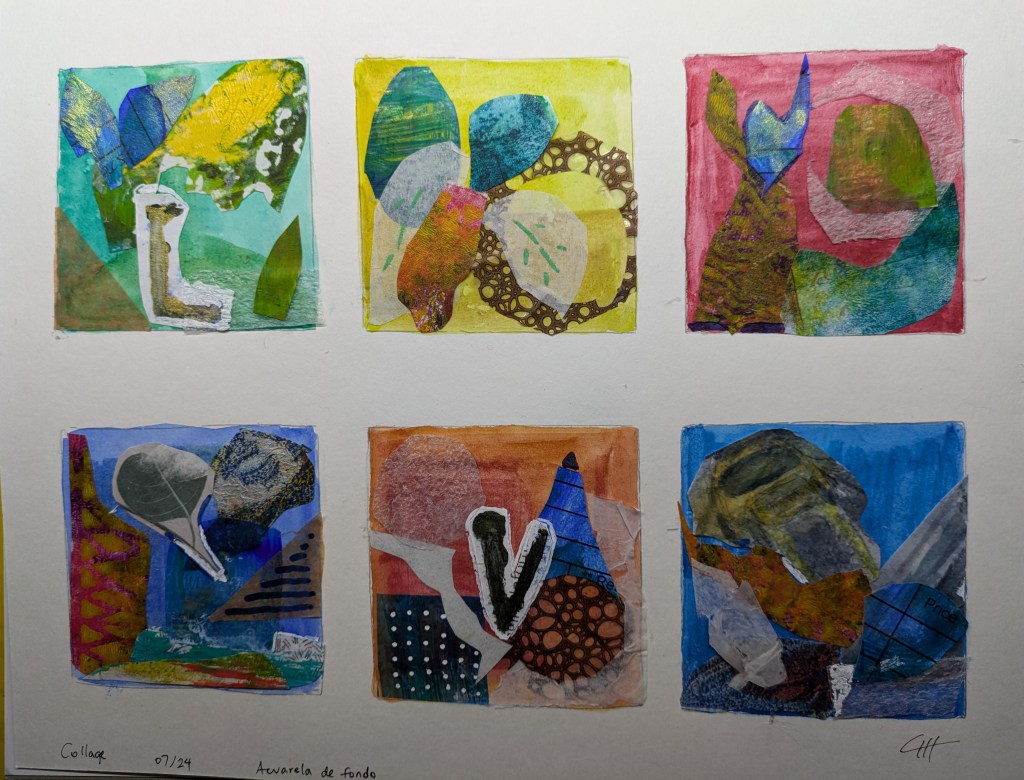 Collages: paper, magazines, gouache, watercolors, glue…all kind of things that passes in front of me goes in.