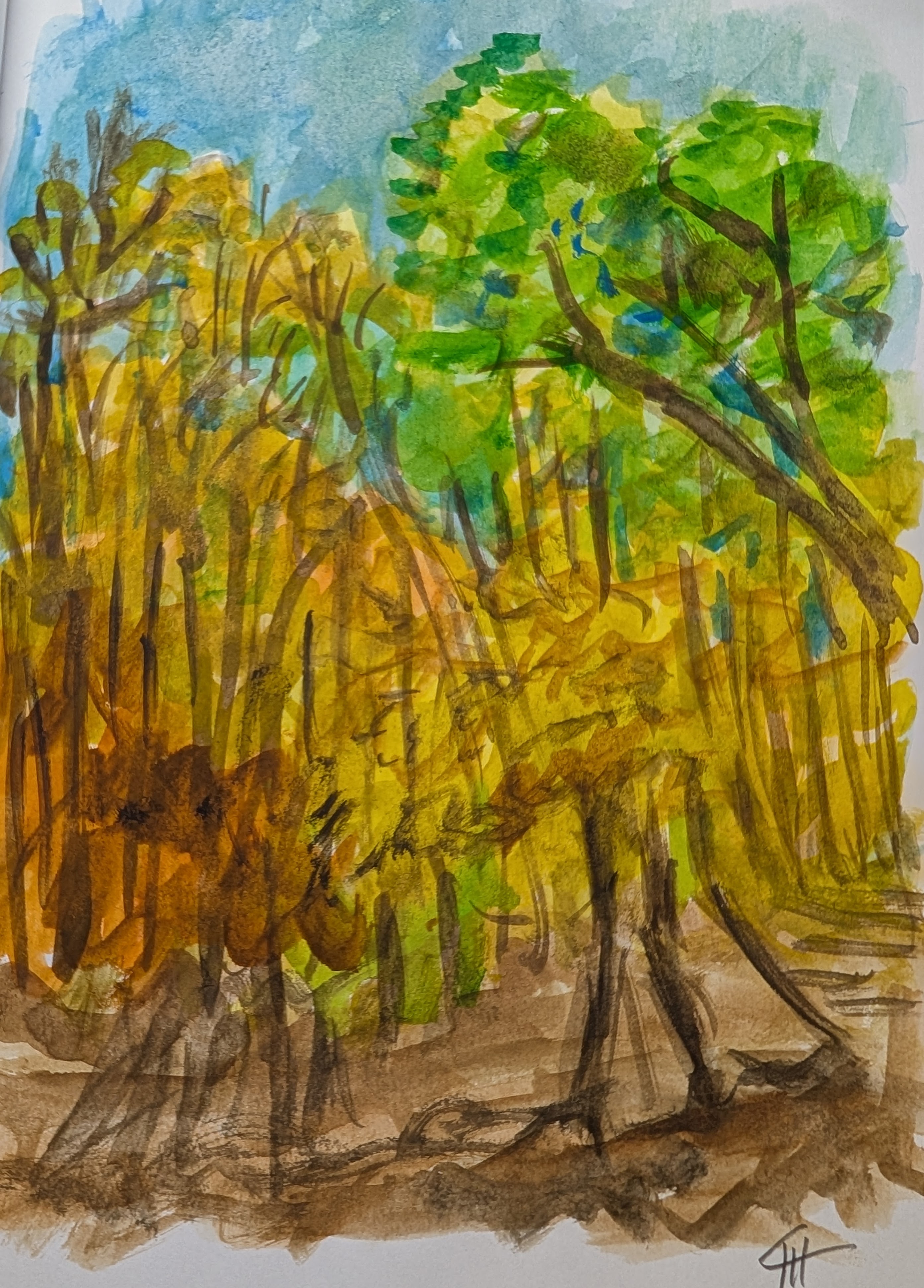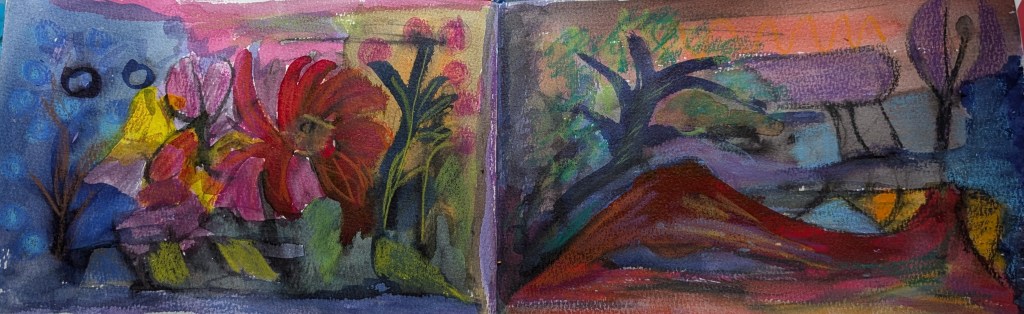 Playing with colors…Watercolors, watercolor inks, acrylic inks, gouache, neocolors, markers, watercolor pens… collages… on watercolor papers. Having fun!