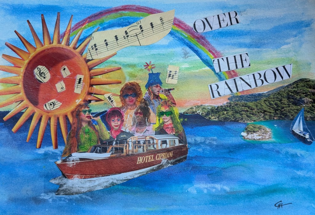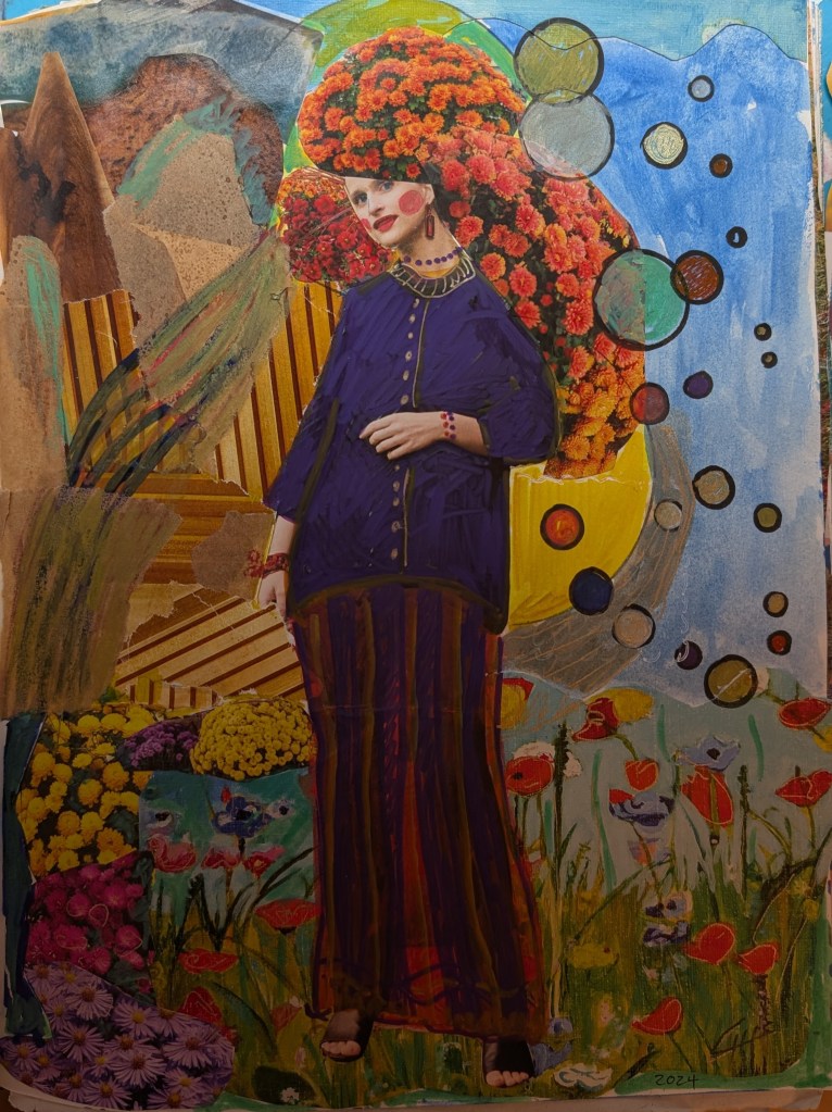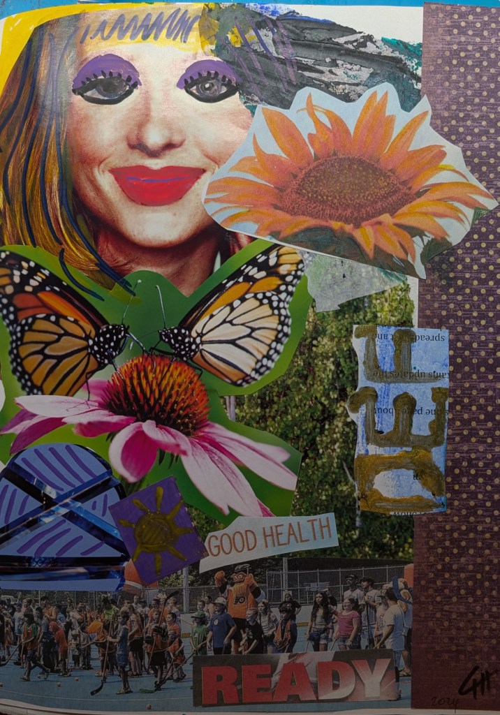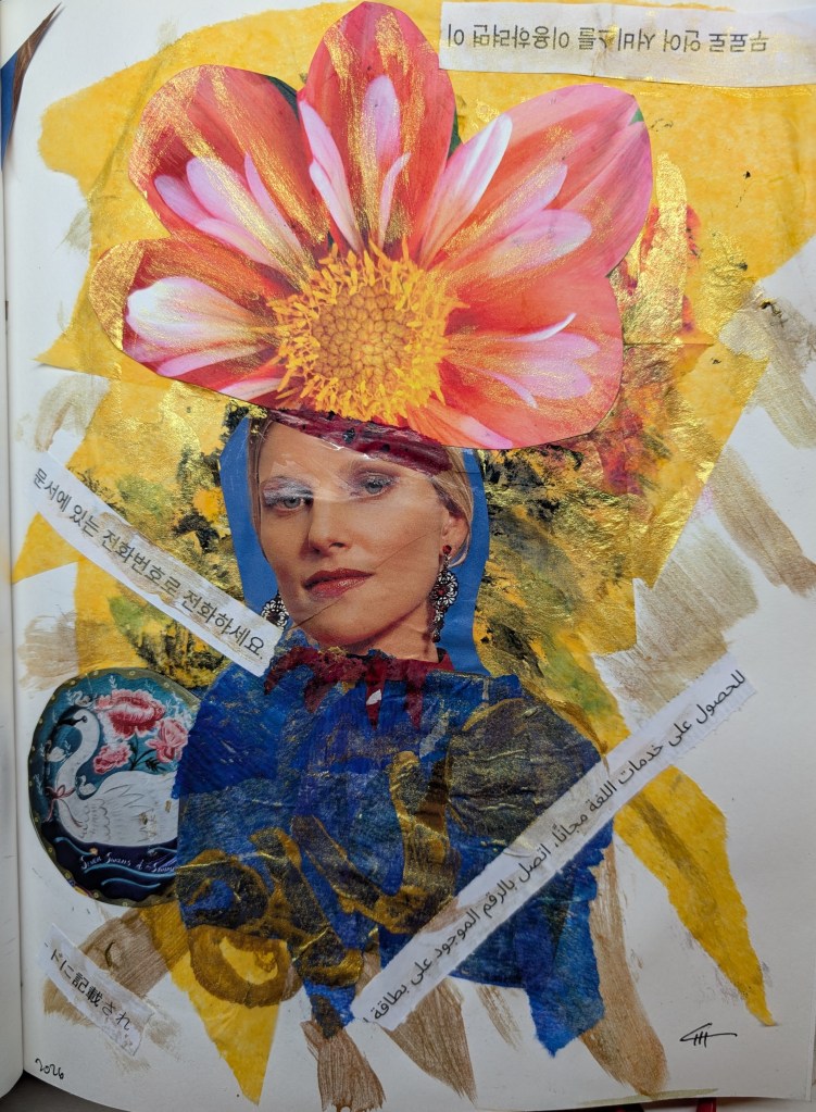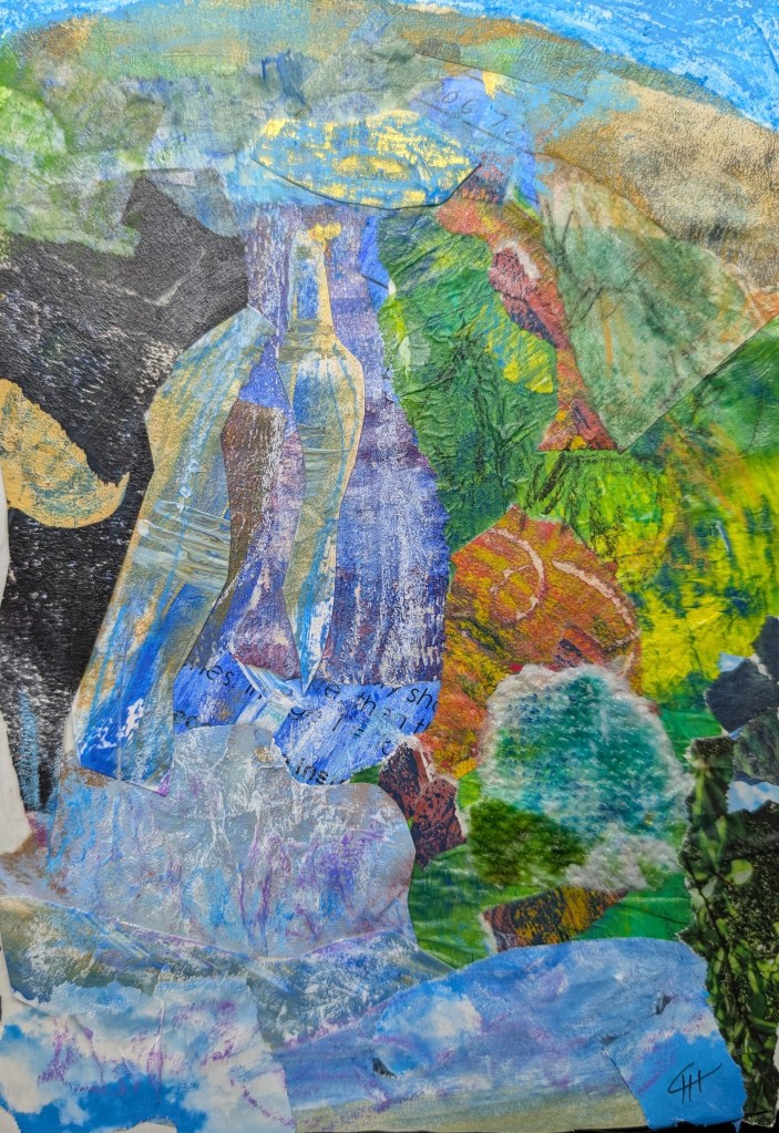 Making collages with different materials, as paper clippings, magazine paper, gelli prints, watercolors and using the imagination is really fun.