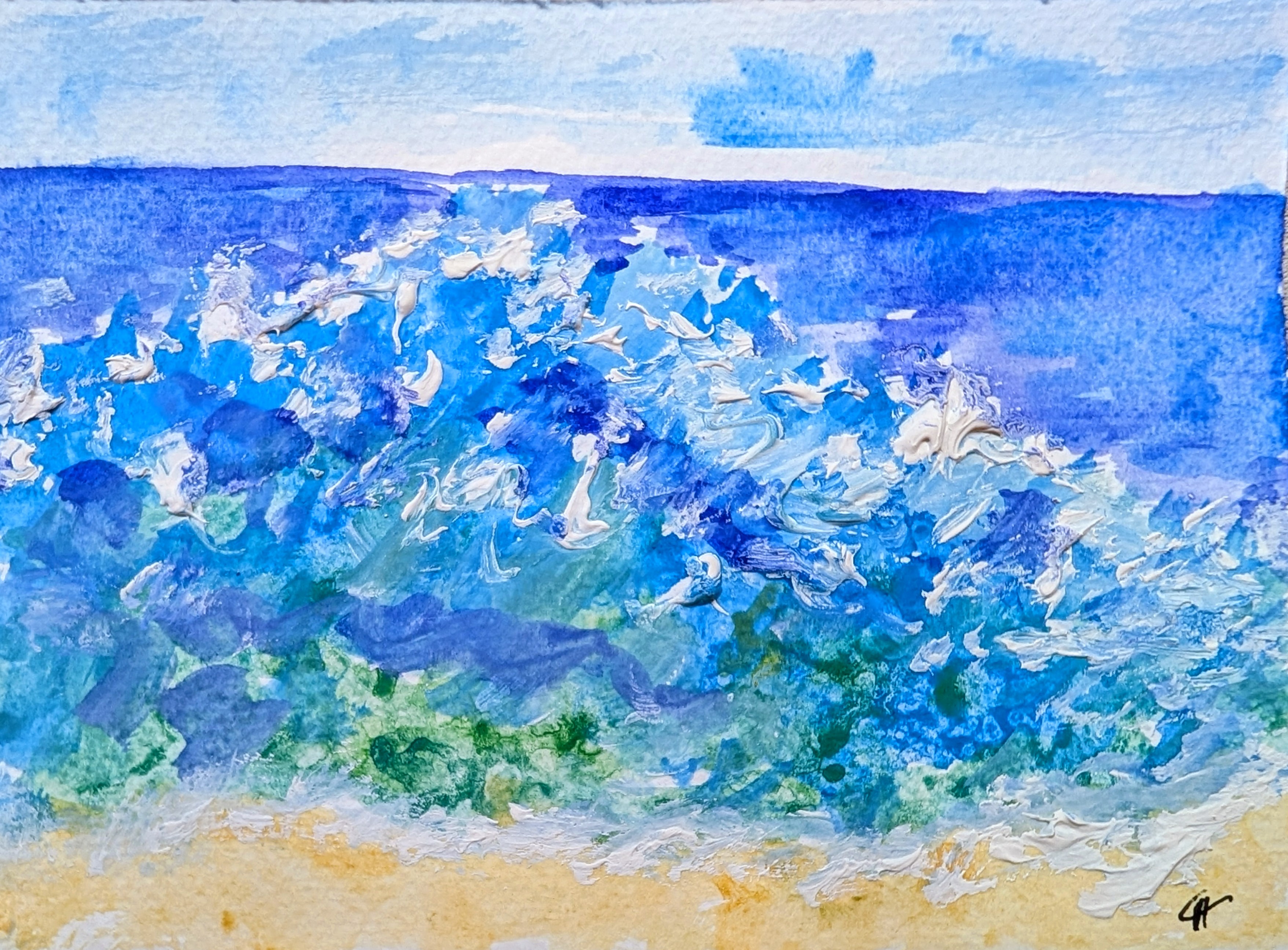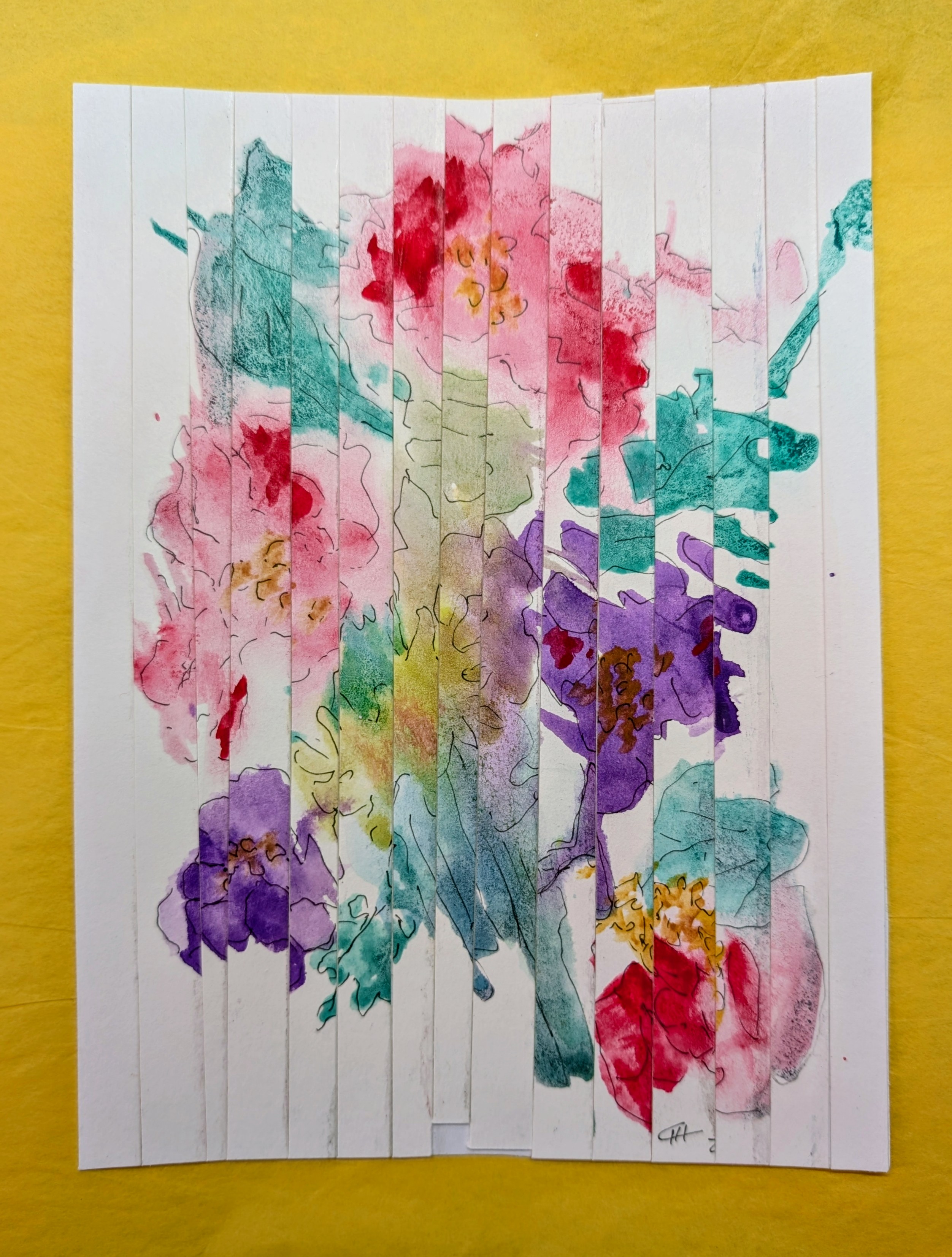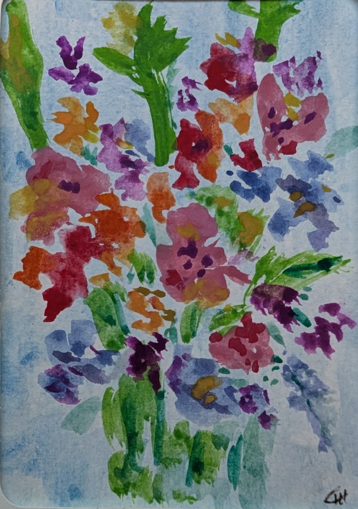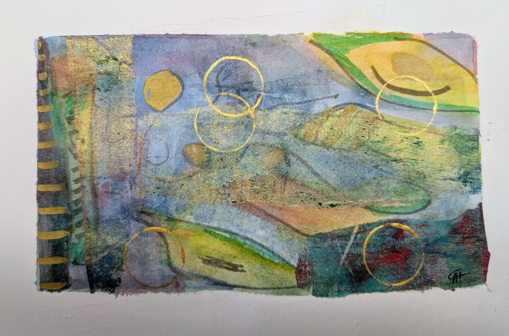 Different paintings with all kinds of materials: watercolors, acrylic inks,