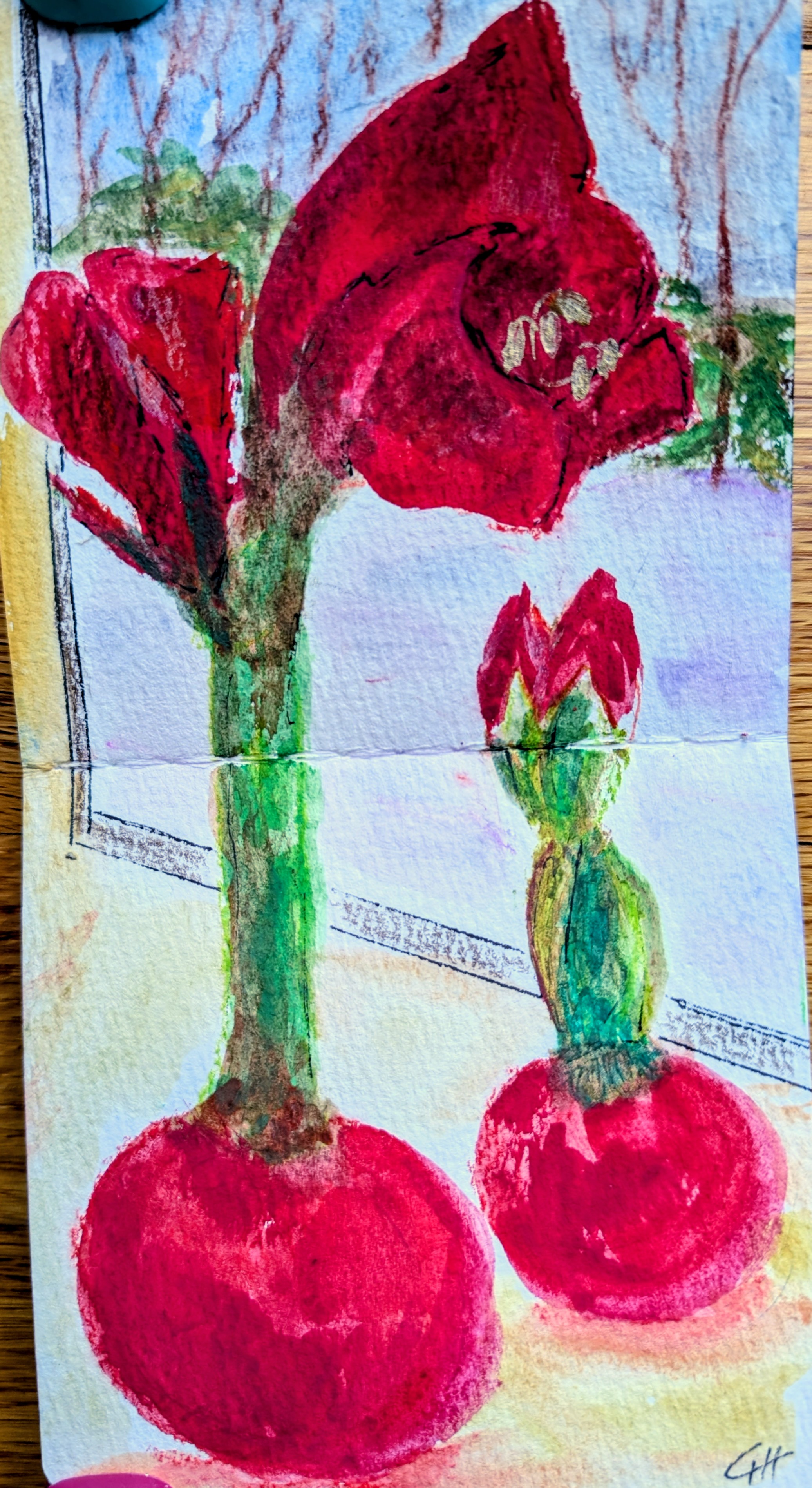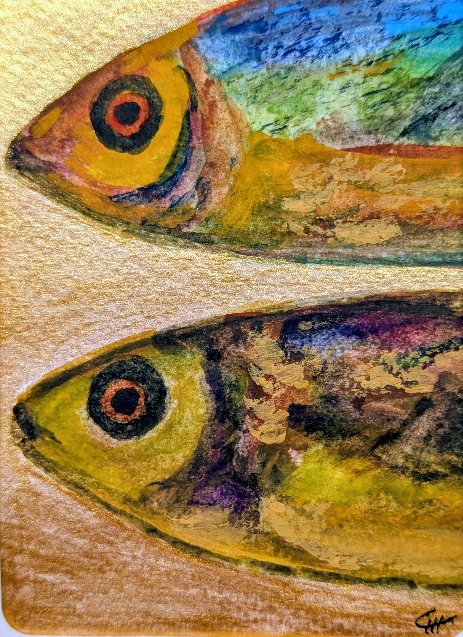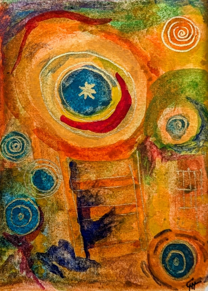 oil pastels,gouaches, acrylics , watercolor pencils and ink pens, all on watercolor paper. Each one is a different practice and way of expressing myself.