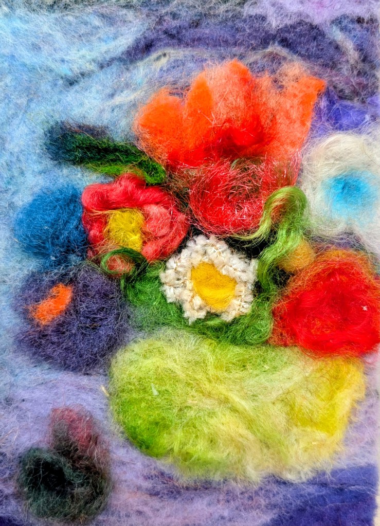 Felting flowers is wonderful! I have so many colors wool, that is difficult to choose of.
