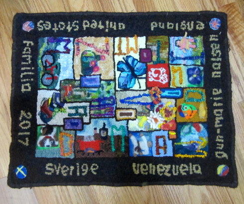 Ahora es espanol!!! Estoy en una nota de my “suequidad”, de repente me interese en disenos de 1700-1800 escandinavos, asi que fui a una clase de FRAKTURS en Fox Cottage en Dayton, con una profesora, Susan Feller, que es una maravilla, nos puso a disenar nuestras alfombras, y salio una flor de esa epoca ,en la parte de abajo tiene un corazon con los colores de la bandera de Suecia, pero, los bordes, anchos y ricos en color, por alguna razon misteriosa, tienen el amarillo, azul y rojo de nuestra bandera venezolana, creo que tenia que ser asi!, en la parte de abajo van las iniciales de mi Papa y mi Mama, con el monograma de mis dos apellidos, Nalsen Hasselblad, es un tributo para ellos, estoy trabajando en eso, me encanta, es en rug hooking, y uso lanas de colores lindos, ya la veran cuando este mas avanzada!