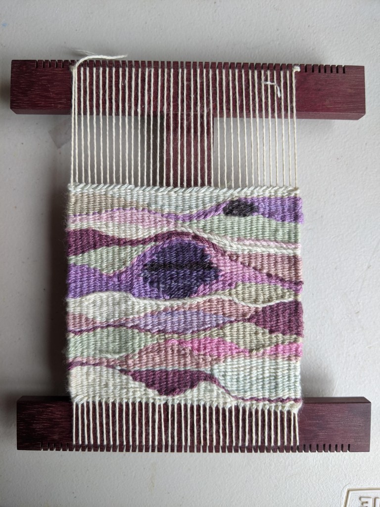 Working on curves is not that easy, you have to practice! I have been working on my Hockett loom for a while, it is fun, it takes a lot of time!