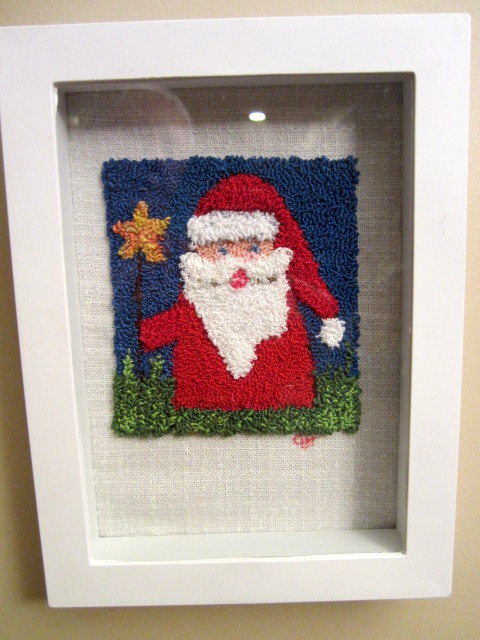 This is a class I took at The YMCA in Doylestown, with Cassandra Gunkel on felting in a different way, felting wool fabric on wool fabric, you have to work it more of course, and adding all sorts of materials. The task was to represent a memory from when you were a kid. It is a scene of Christmas when I was just one and a half years, where Tomten came to the house with presents, and Lena ,my sister dressed like a Lucia, and I ,as a star girl, greeted him! It brought so many nice memories!!! Thank you Cassandra!
